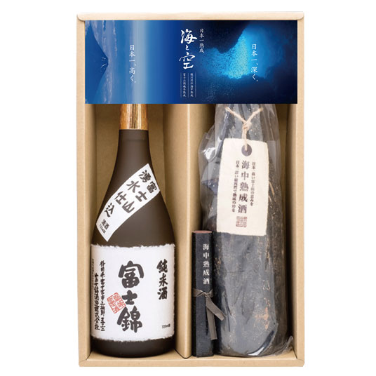 日本一深い駿河湾の海底で貯蔵熟成させたお酒と、日本一高い富士山頂で貯蔵熟成させたお酒をセットにした、日本で唯一のユニークな商品です。