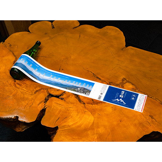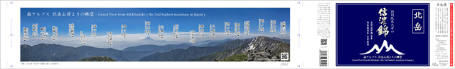 瓶のラベルの内側に、蔵元の社長・宮島敏が北岳山頂で撮影した南アルプスと富士山のパノラマ写真が巻き付けられています。ミシン目できれいに切り取れるので、飾って楽しむことができます。