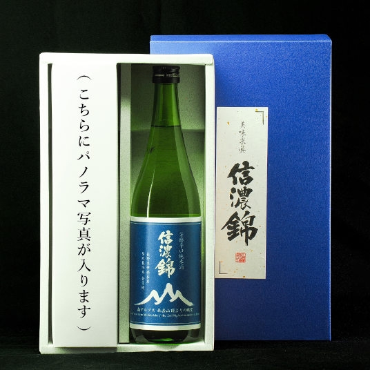 【内容量】信濃錦 山ラベル「北岳」720mL ×1本 、北岳頂上からのパノラマ写真 1枚(297mm×1,200mm)