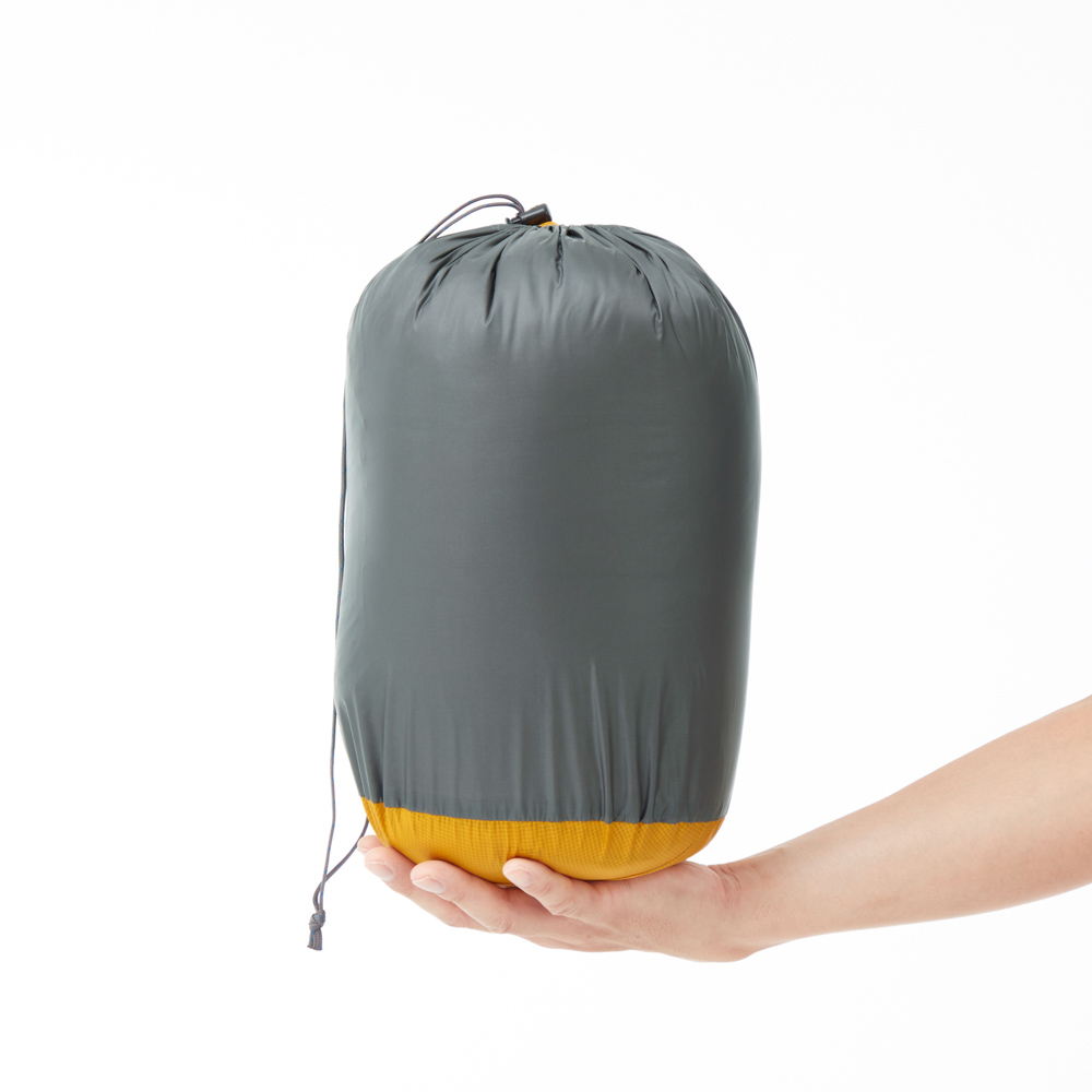 表地と裏地の間を隔壁で仕切った「箱マチ」構造。ダウンのロフト(かさ高さ)が大きく得られ、移動・片寄りを防ぎます。ダウンの保温性能を最大限に引き出します。