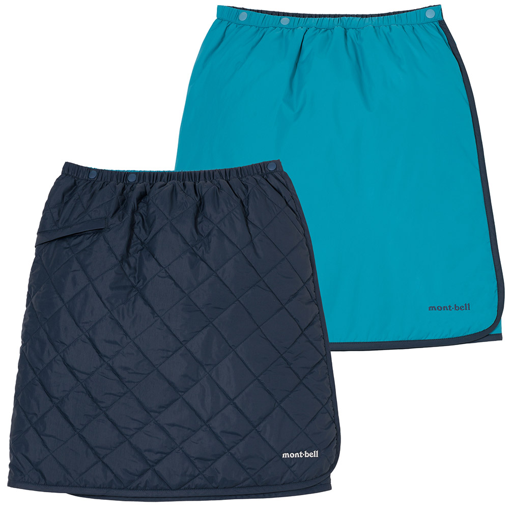 保温性に優れた中綿エクセロフト®を封入したリバーシブル仕様の巻きスカートです。ウエストはゴムで優しくフィットし、スナップボタンでサイズ調節できます。表面の腰ポケット部分に全体をコンパクトに収められるポケッタブル仕様なので持ち運びにも便利です。