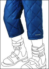 高品質ダウンと超軽量シェル素材を組み合わせ、保温性と軽量性を高次元で両立したひざ下丈のパンツです。中間着として着用してもブーツに干渉せず、軽快に行動できます。