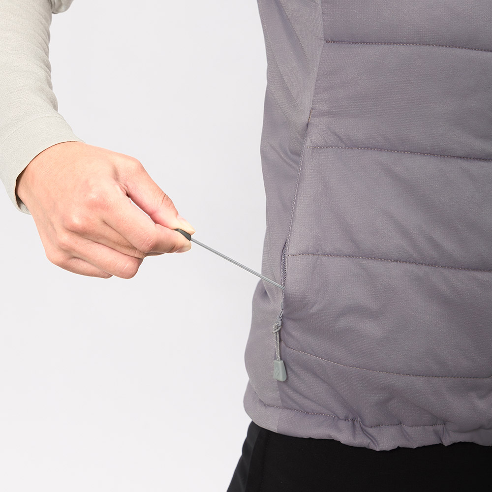 保温性と運動性を兼ね備えたベストです。脇にストレッチ生地を使用し、体に程よくフィットする細めのシルエットです。