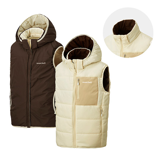 保温性と速乾性に優れた化繊綿エクセロフト®を封入したフードベストです。防風性・保温性に優れた三枚差し構造なので、秋口から春先にかけてのアウトドア・アクティビティなどに適しています。表面と裏面で2種類の色とデザインが楽しめるリバーシブル仕様です。取り外し可能なフードを備え、幅広いシーンで着用できます。ご自宅でも手軽に洗濯可能です。