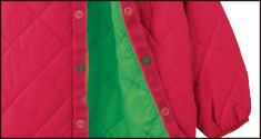 表地と裏地をつぶし縫いで縫製。保温材の片寄りを防いで保温効率を高め、軽量・コンパクト性にも寄与します。
