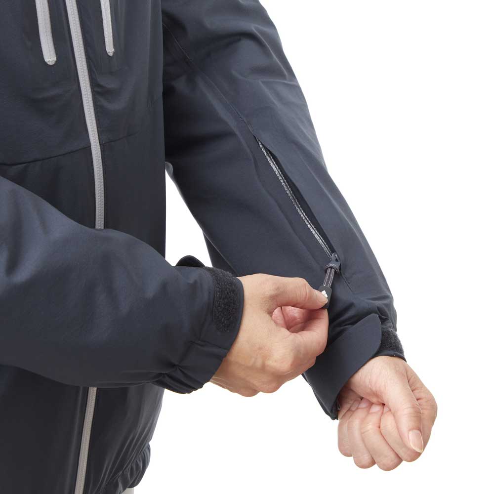 【特長】トライアクスルフード / フィット感を高める独自の立体パターン / 高めの襟元 / ジッパーが顔に当たらない仕様 / 立体裁断(肘) / アルパインカフ / アクアテクト®ジッパー / リードインコード・システム(裾) / リフト券やICチップを入れられる左袖のポケット