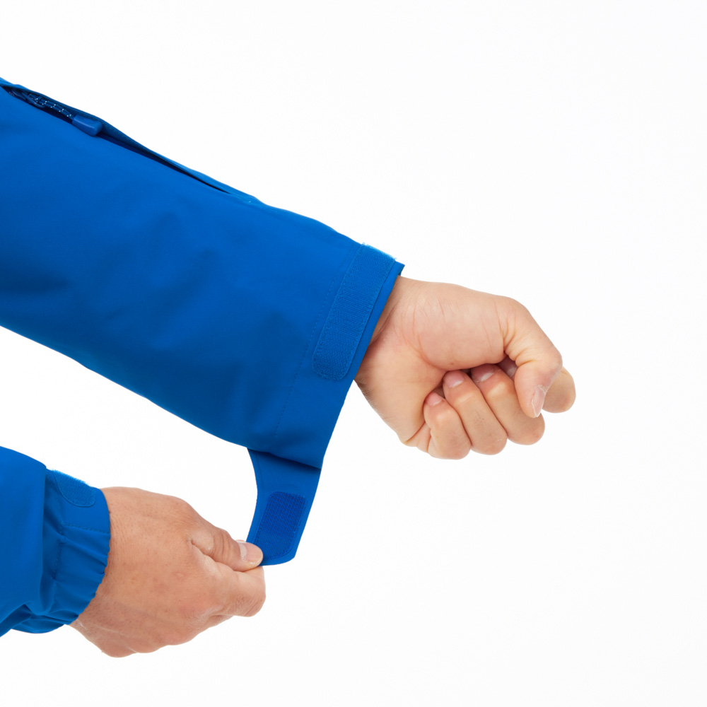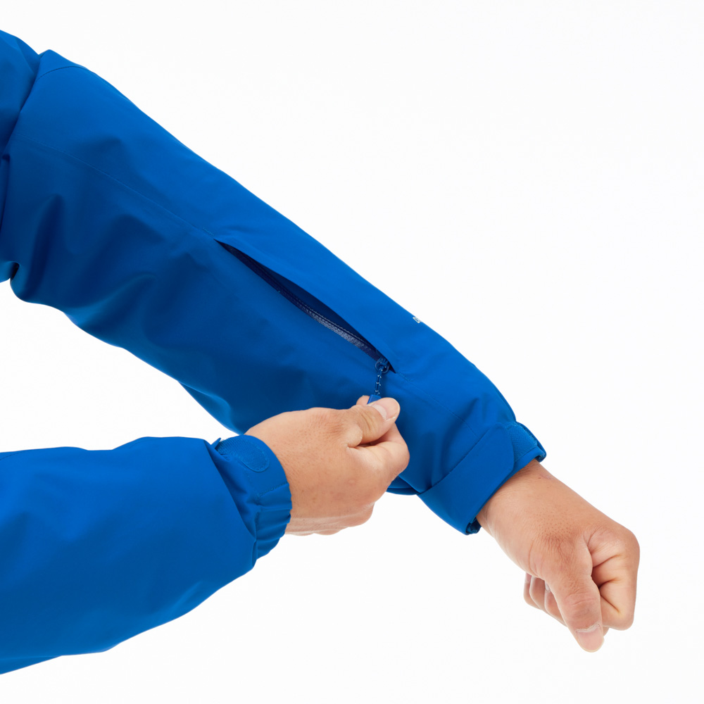 【特長】トライアクスルフード / フィット感を高める独自の立体パターン / 高めの襟元 / ジッパーが顔に当たらない仕様 / 立体裁断(肘) / アルパインカフ / アクアテクト®ジッパー / 滑り止め付きウインドスカート / リードインコード・システム(裾) / リフト券やICチップを入れられる左袖のポケット / スタッフバッグ付き