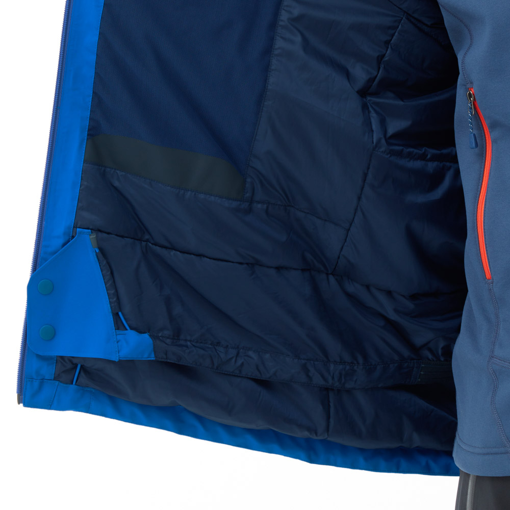独自開発の防水透湿性素材スーパー ドライテック®を使用し、さまざまなスノースポーツで活躍するパーカです。全面に保温性と耐久性に優れたエクセロフト®を封入し、保温性を高めています。