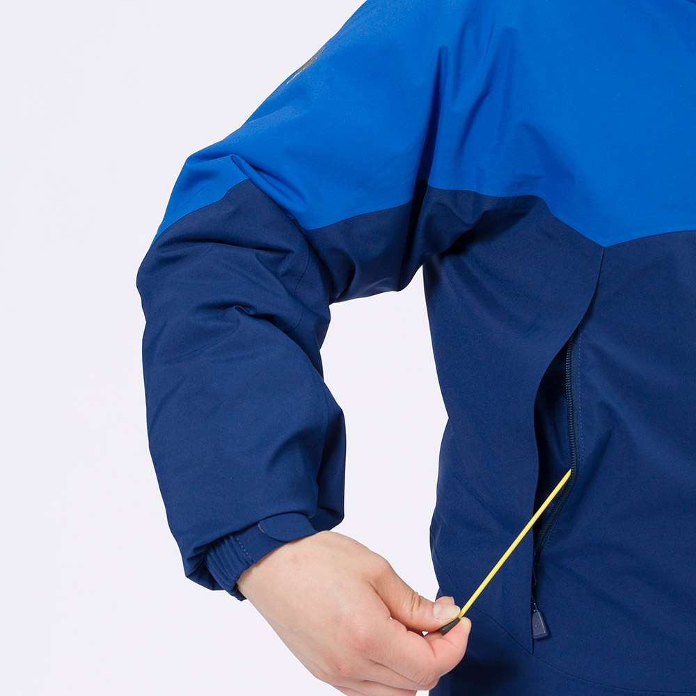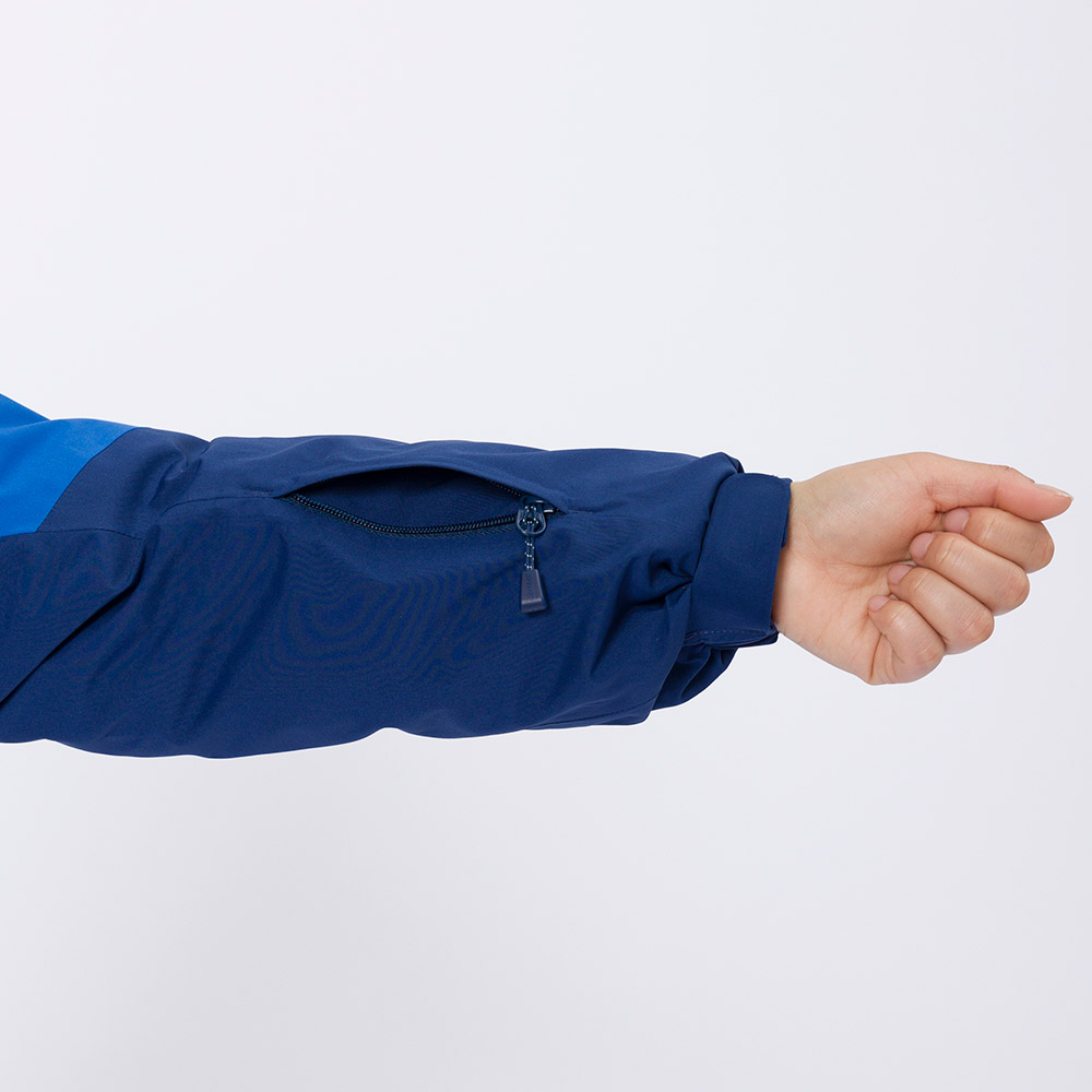 【特長】グローフィットシステム / ビルトイン・ドローコード・システム / フードのベルクロでひさしの高さを調節可能 / ジッパーがあごに当たらない仕様 / 立体裁断(肘) / ベルクロで袖口のフィット感を調節可能 / アクアテクト®ジッパー / 左袖にリフト券やICカードを入れられるポケット付き / 反射ジップタイ / ネームタグ付き