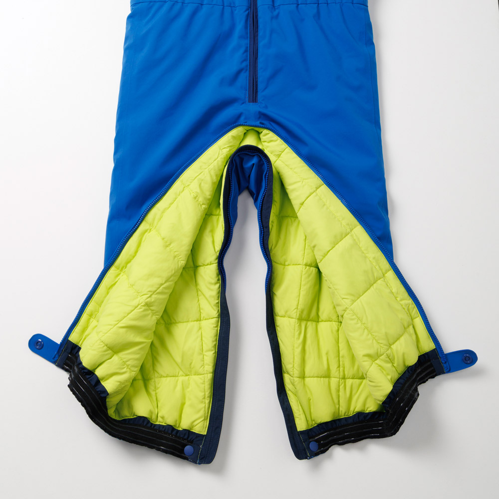 防水透湿性に優れたスーパー ドライテック®を使用し、雪遊びやスキーに適した、保温材入りのカバーオールです。保温材には暖かく速乾性に優れた化繊綿のエクセロフト®を使用し、全面に封入。サイズ調節システム(グローフィットシステム)により約20cmの身長差に対応でき、子どもの成長に合わせて長く着用いただけます。股下にはフルオープンジッパーを装備し、袖や靴を脱がなくても用足しができます。フードはスキー用ヘルメット対応で、裾幅はパウダーブーツKid'sなどのウインターブーツやスキーブーツに対応します。左袖にはリフト券やICカードをを収納できるポケットを設けています。汚れたらご自宅で洗濯できます。浸水しやすい箇所には目止め処理(シームテープ)を施しています。
