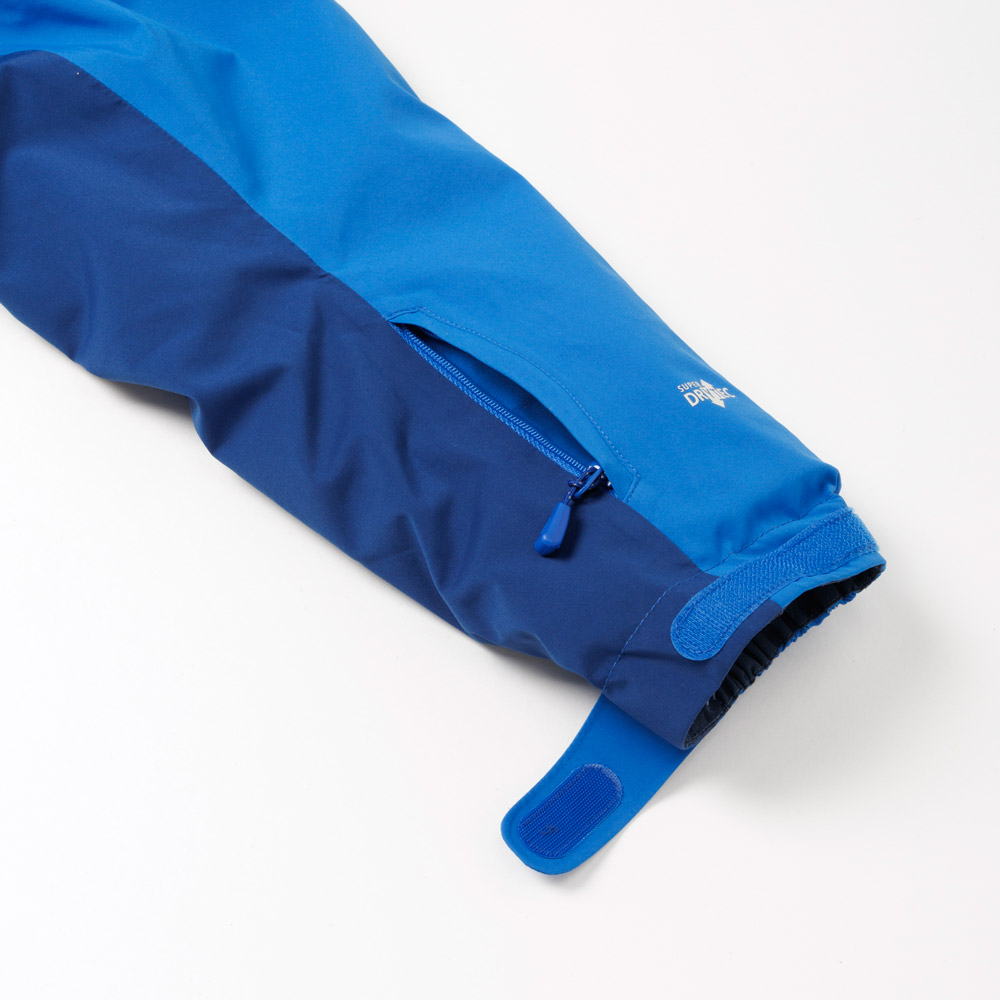 【特長】グローフィットシステム / 左袖にリフト券やICカードを入れられるポケット付き / ベルクロで袖口のフィット感を調節可能 / ジッパーがあごに当たらない仕様 / フードとウエストはゴムで適度にフィット / インナーサスペンダー(取り外し可能) / 裾に滑り止め付き / 股下フルオープンジッパー / ネームタグ付き