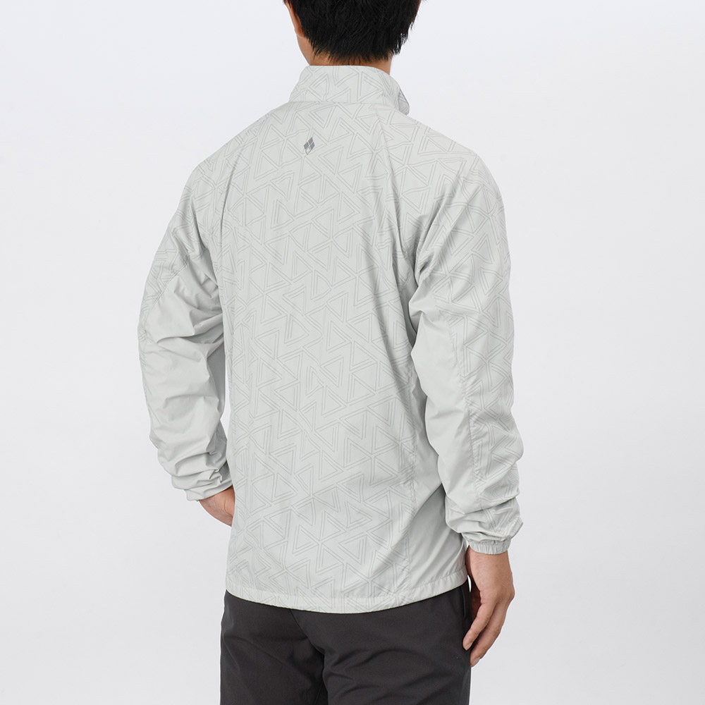 車のライトなどが当たると反射して光る特殊プリントを全面に施し、暗闇でも視認されやすい、安全に配慮したジャケットです。夜間のジョギングや犬の散歩など、普段使いのシェルとして幅広くご使用いただけます。軽量・コンパクトで携行にも便利です。