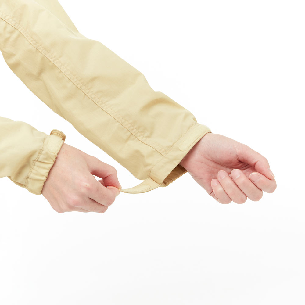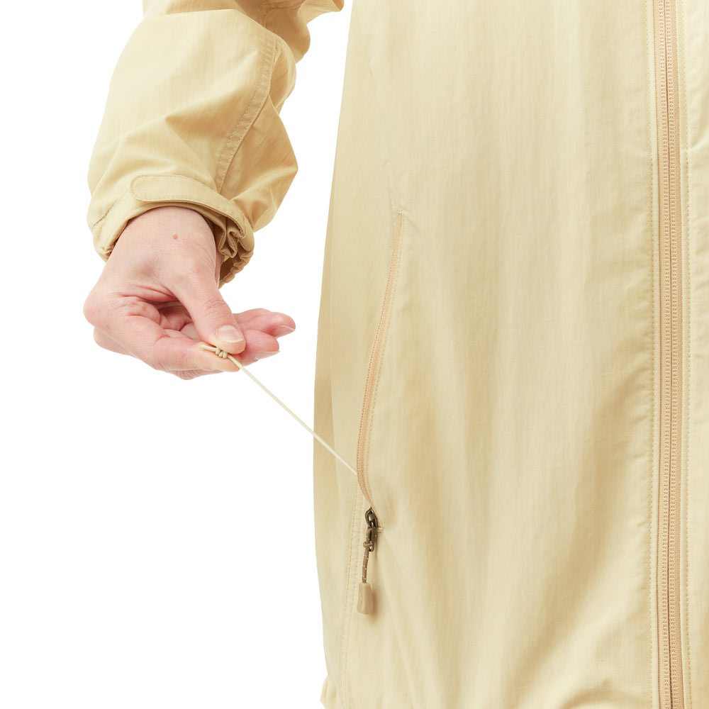 【特長】ジッパー付きポケット2個(腰)/ジッパーがあごに当たらない仕様/アルパインカフ/立体裁断(ひじ)/リードインコード・システム/フードの顔まわりのフィット感の調節が可能