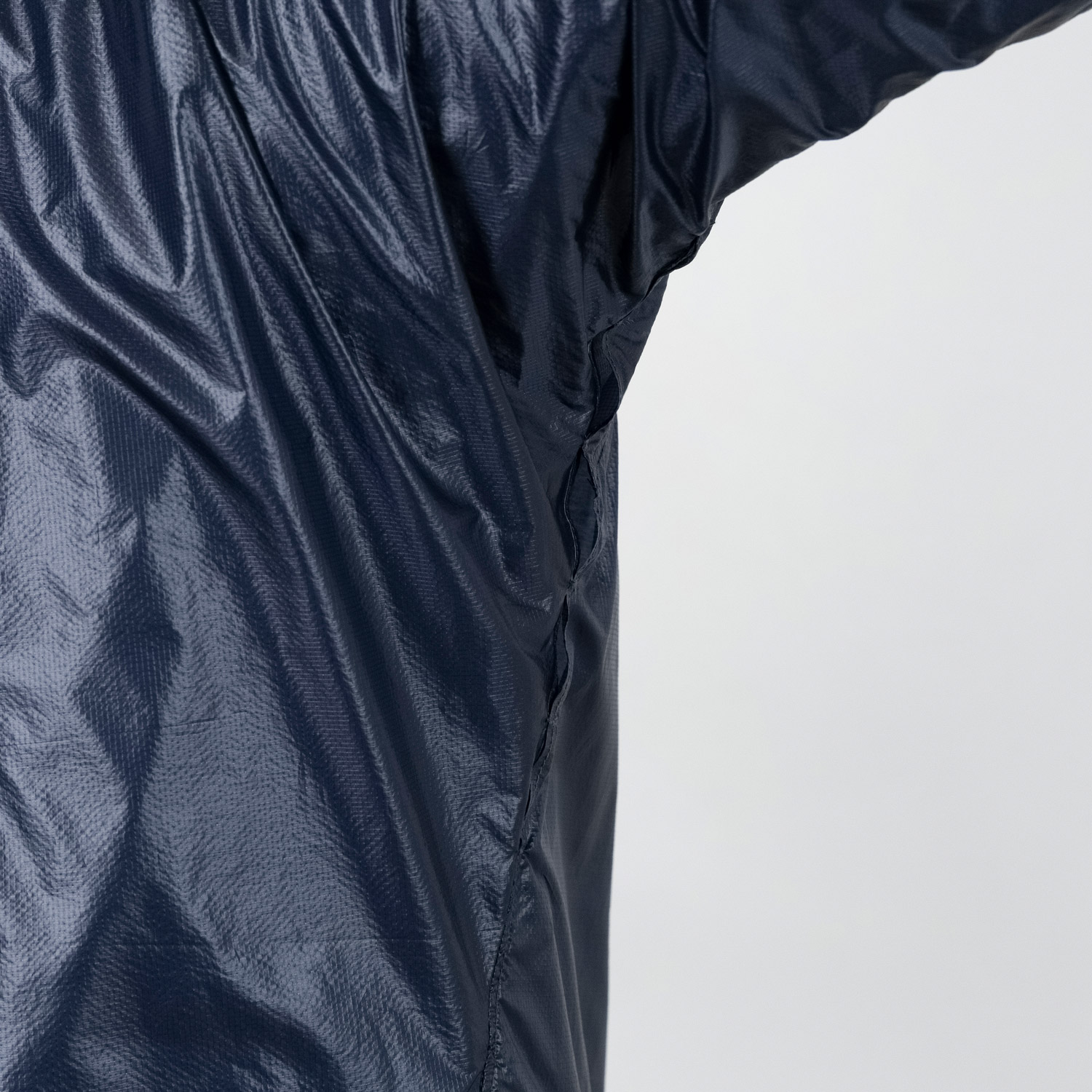 肉眼では見えないほどに細い糸を最先端技術で織り上げた極薄シェル素材です。極めて高い次元で超軽量と耐久性を両立した素材です。使用する部位によって厚みを使い分けています。