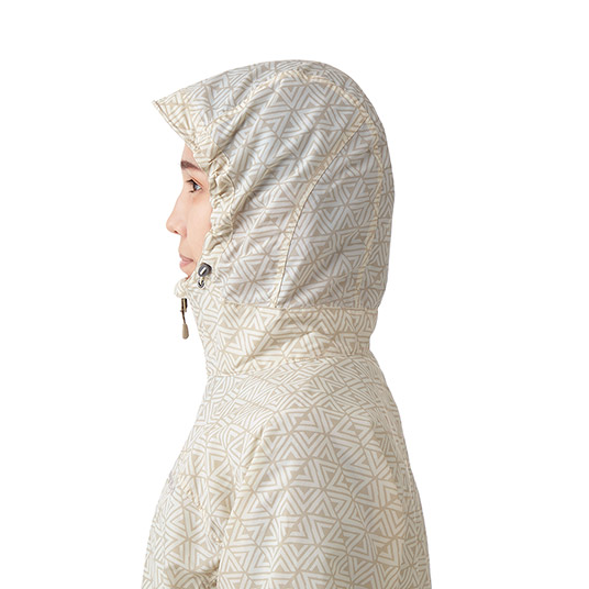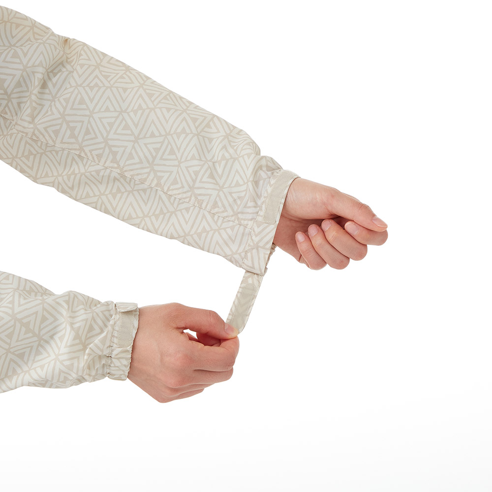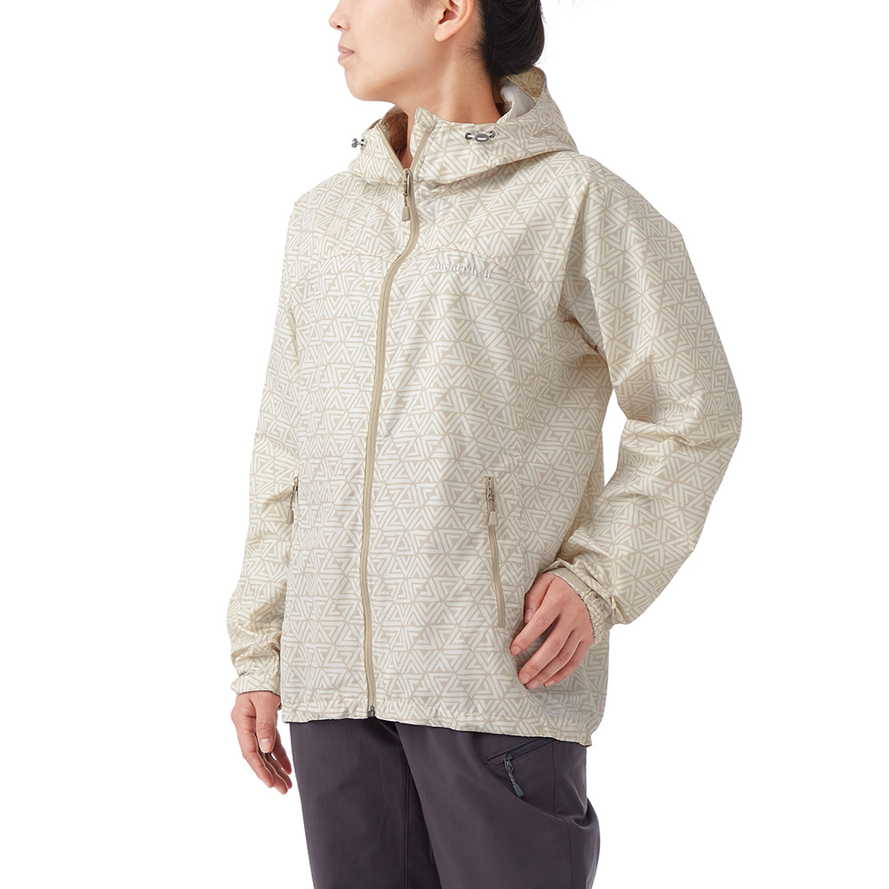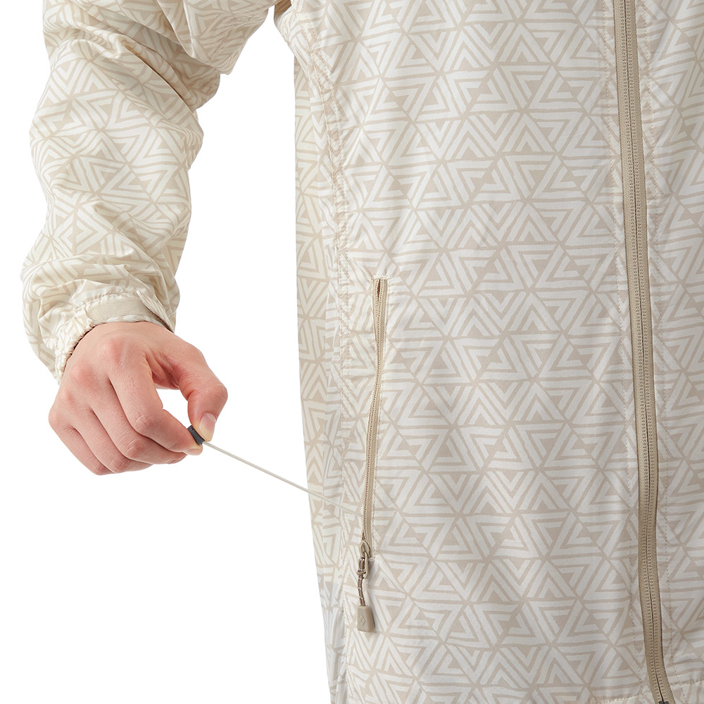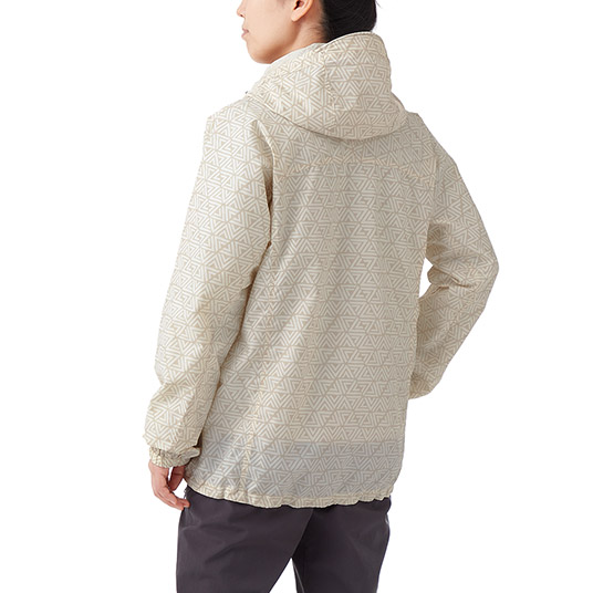 コットンのような風合いを持つプリントパーカです。適度なゆとりを持たせたシルエットで、軽やかな着心地。リードインコード・システムとアルパインカフで裾と袖を調節できます。