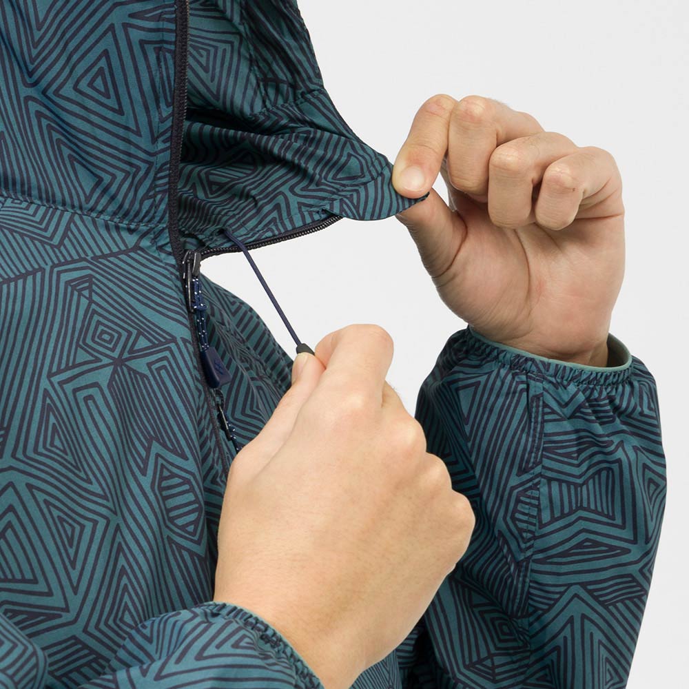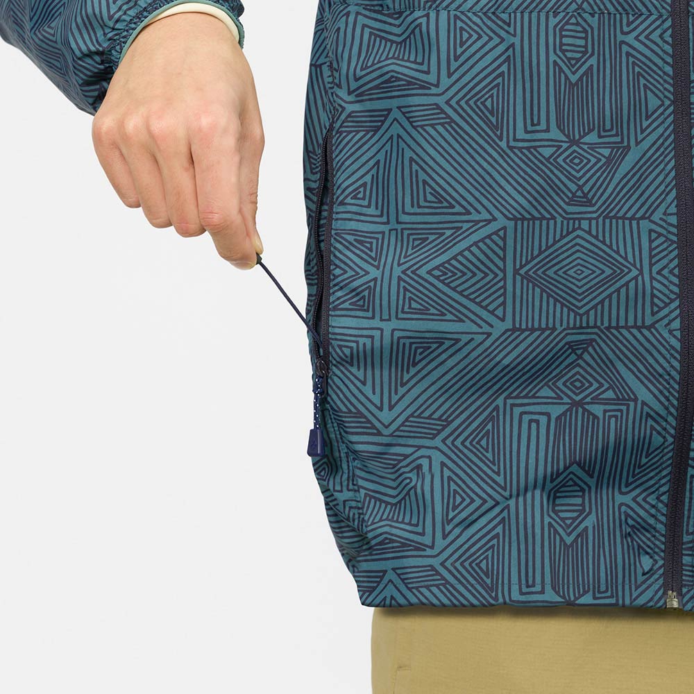 耐久性と軽量コンパクト性をバランスよく両立させた、柄をプリントしたタイプのパーカです。適度に体にフィットさせたデザインにすることで、風によるばたつきを軽減させています。携行に便利なポケッタブル仕様です。