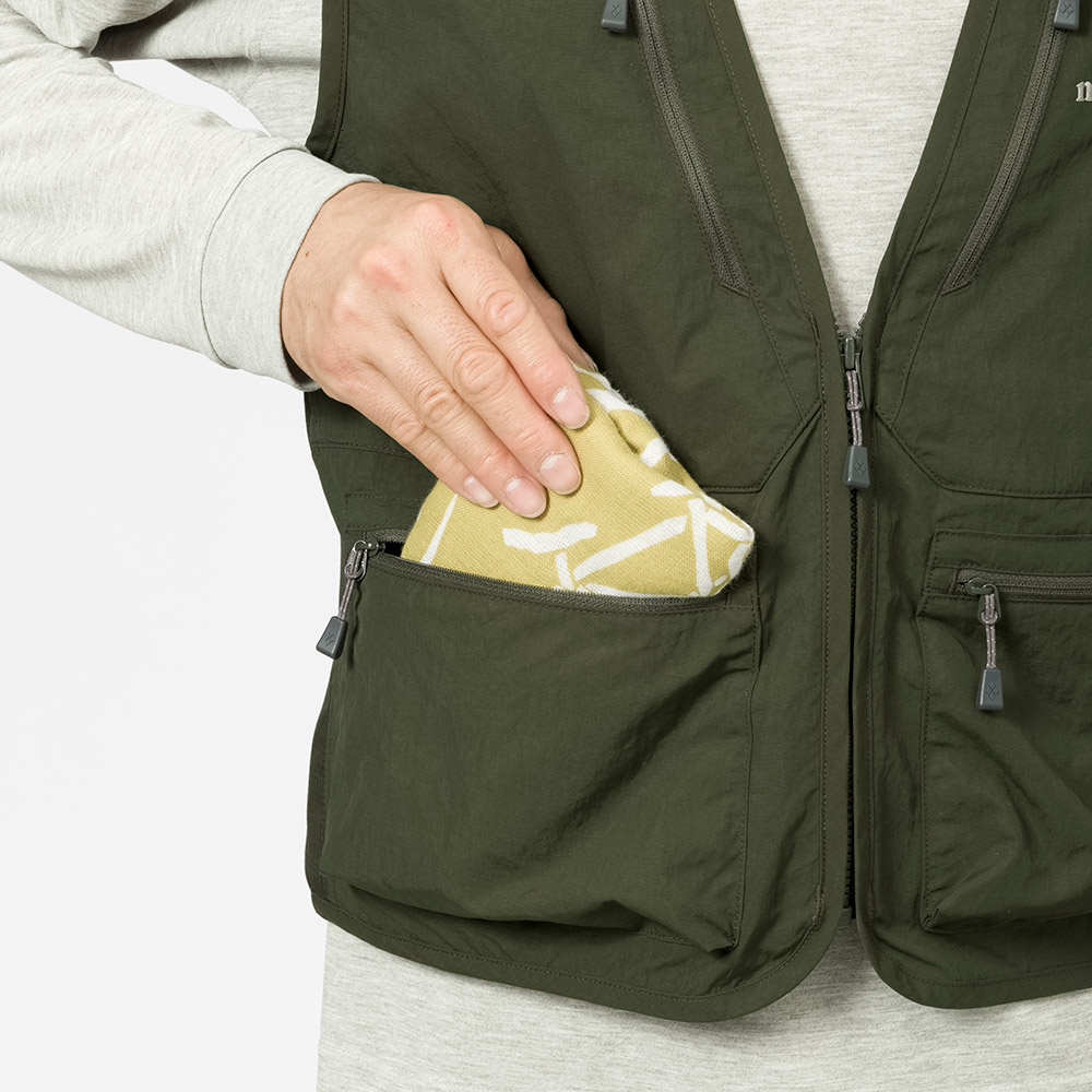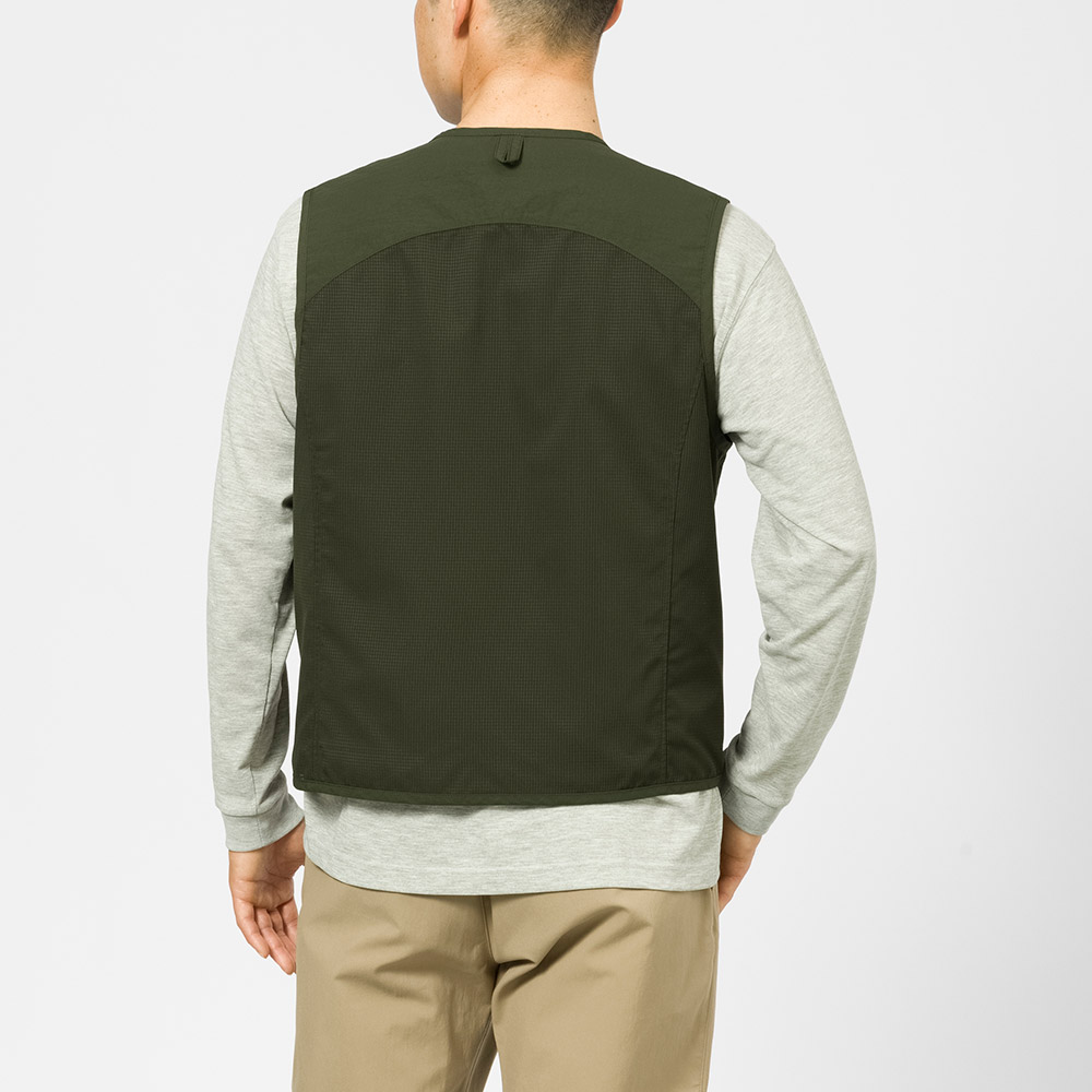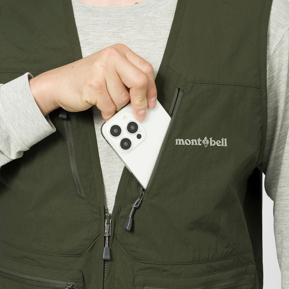 高い収納力を持つ多彩なポケットを備え、登山やバードウォッチングなど、さまざまな場面で活躍する軽量な多機能ベストです。背面から側面にかけて通気性に優れたメッシュ素材を使用し、快適性を確保しました。