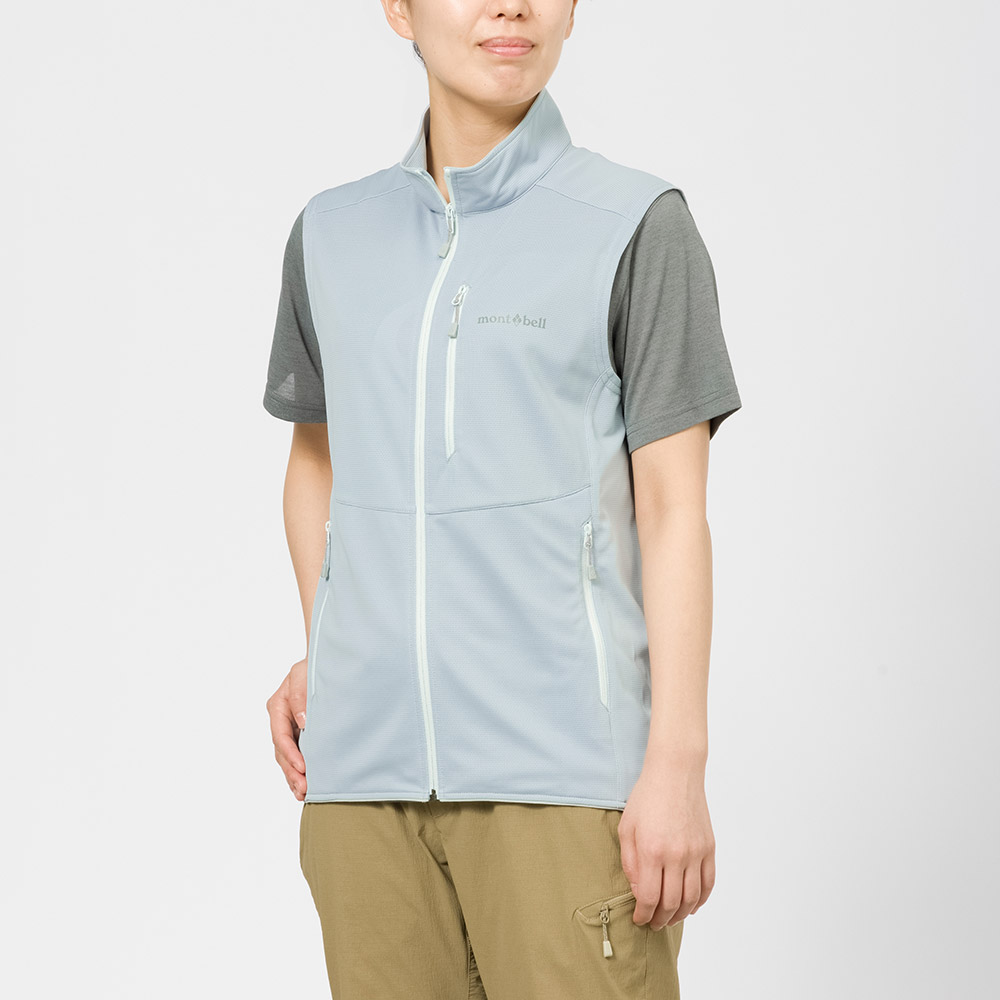 通気性と速乾性に優れたウィックロン クール生地を使用した暑い時季のアクティビティ全般に対応する薄手のベスト。Tシャツの上などに、ポケットが欲しい時に着用できるシンプルなデザインです。また、やわらかなニット素材なので横方向に適度なストレッチ性があり、上にシェルなどを重ね着してもごわつきにくいです。光触媒効果による消臭機能を備えています。