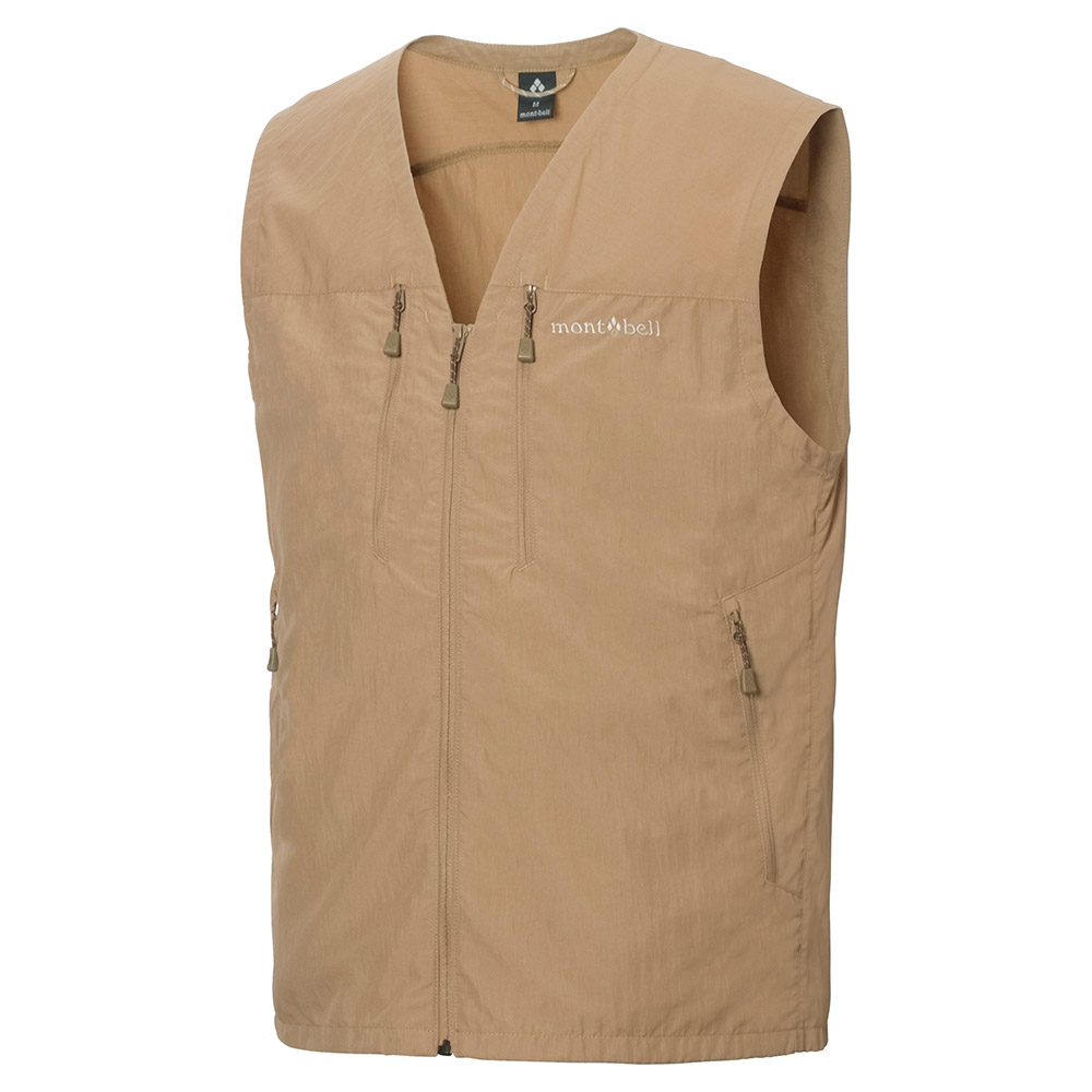 コットンのような柔らかさと肌触りを持つ薄手のナイロン生地を使用した、軽くてシンプルな防風ベストです。襟付きシャツなどと合わせて着やすいVネックタイプです。ポケットが多いのも特徴です。