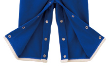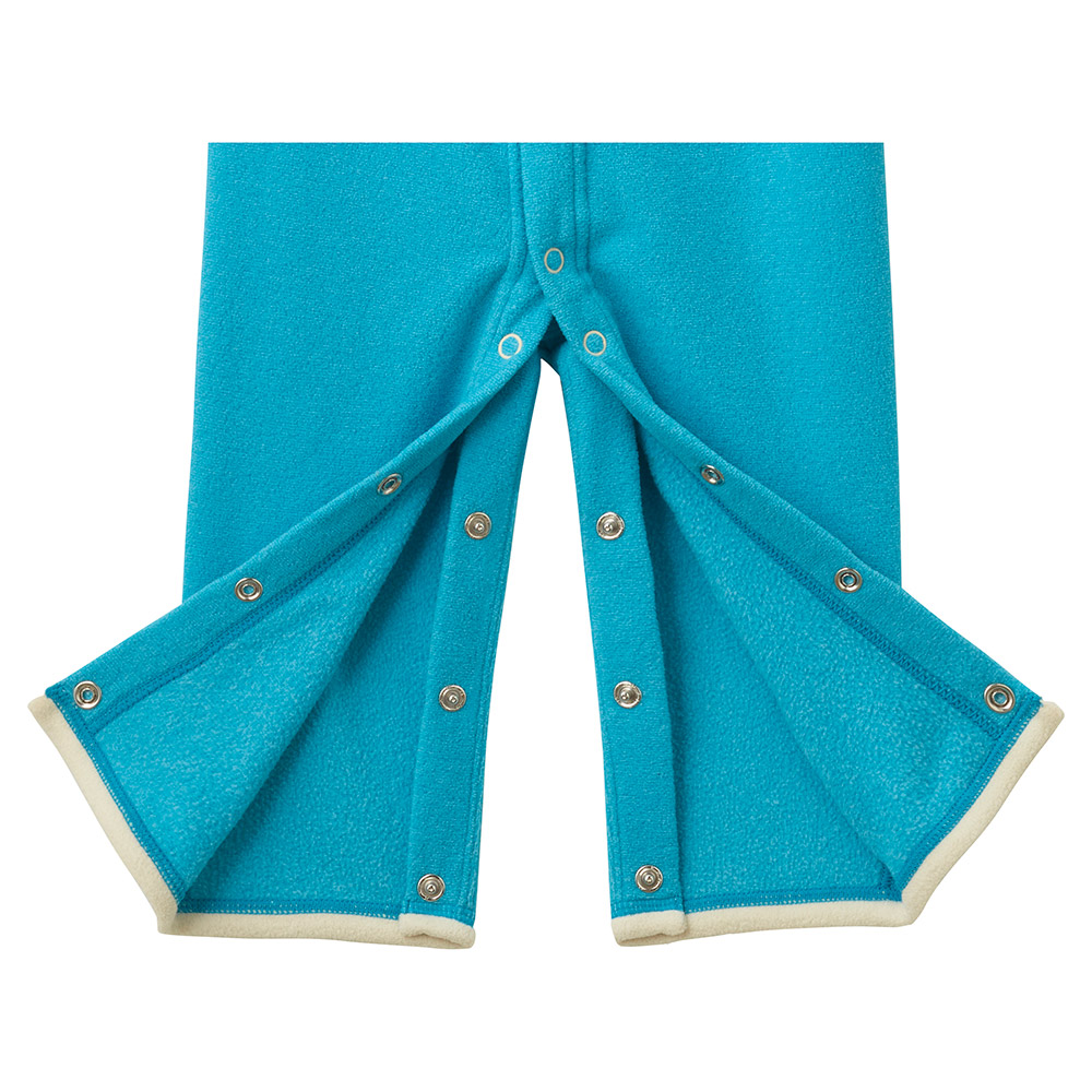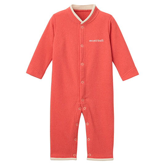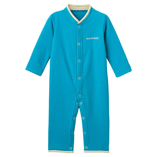 肌触りがたいへん優しい薄手のフリース地を使用したカバーオールです。スナップボタンで襟口からすそまで全開できるので、脱ぎ着やおむつ替えも簡単です。ご家庭で手軽に洗濯でき、すぐに乾きます。