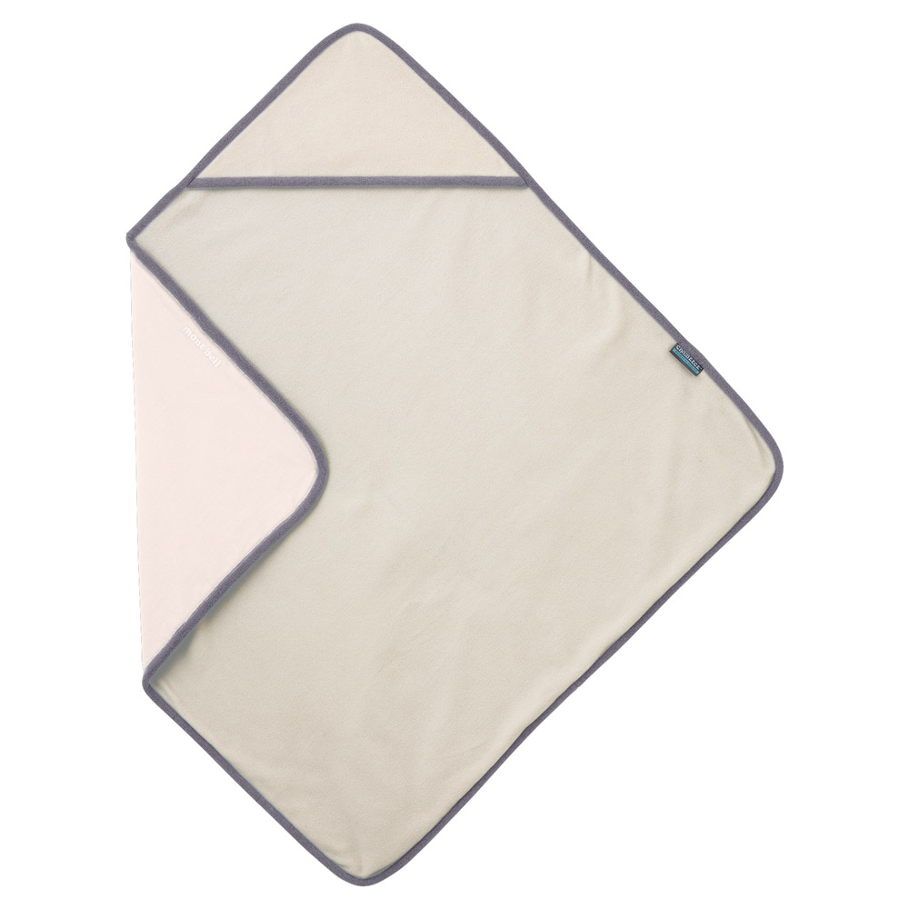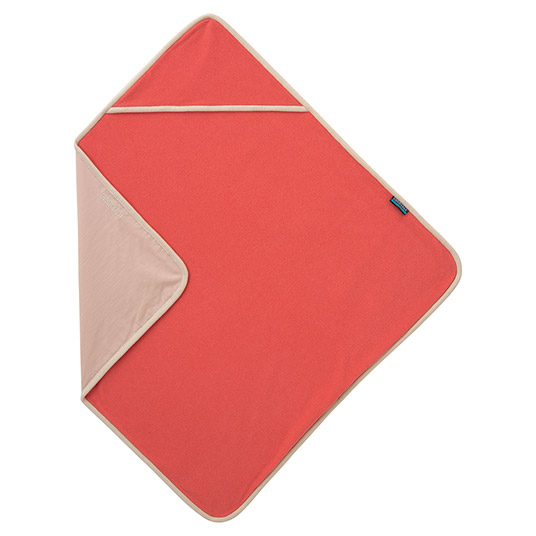 おくるみやブランケットとして使用できる便利なアイテムです。表地にははっ水加工を施しているので、小雨程度なら難なくはじき、汚れも付着しにくくなっています。裏地は薄手でたいへん肌触りが優しいシャミース™を使用し、優しくお子さまを包み込みます。