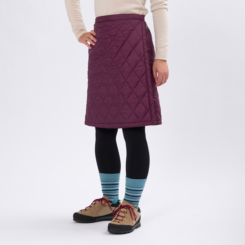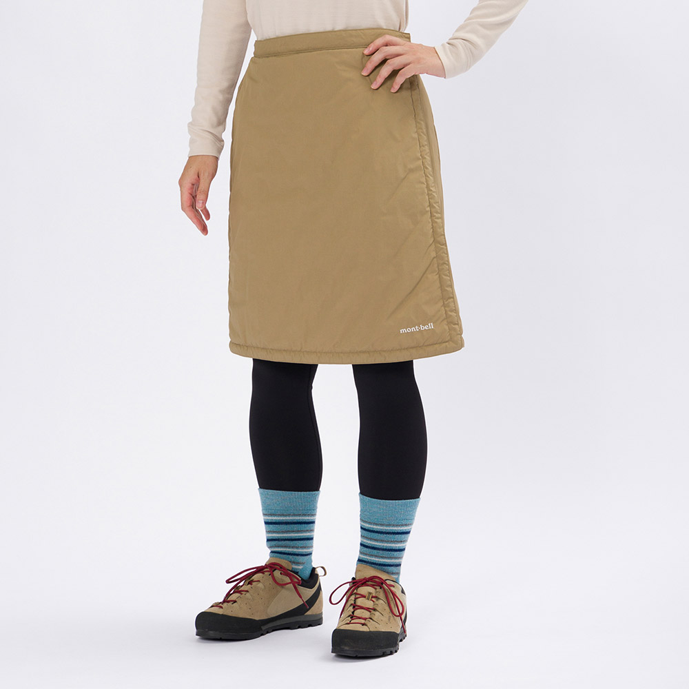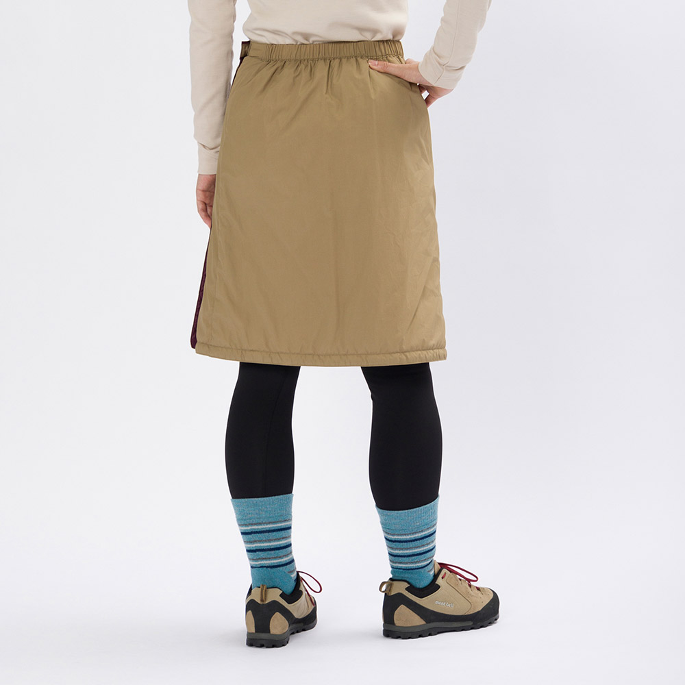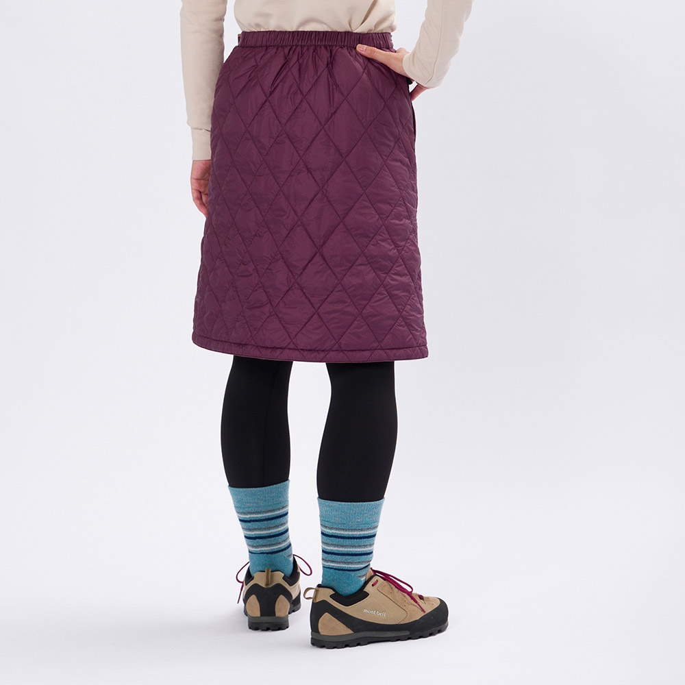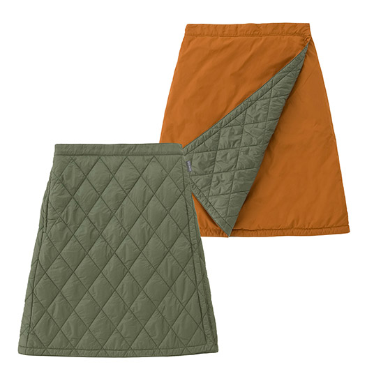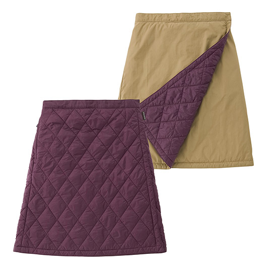 光沢を抑え落ち着いた印象のフラット面とキルト面の、二通りの表情とカラーが楽しめるリバーシブル・デザインのスカートです。フラット面にははっ水加工、キルト面には不快な静電気を軽減する帯電防止加工を施しています。保温材には、濡れや湿気に強く、高い保温性を備えるエクセロフト®を使用。トレッキングやトラベルなどで手軽に着用できます。