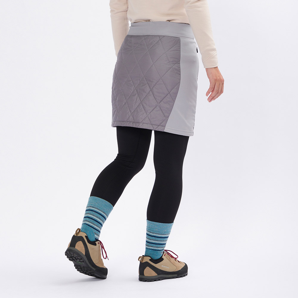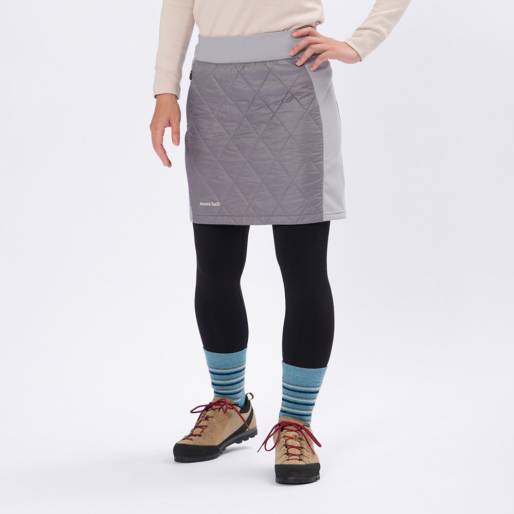 高い保温性と速乾性を備えるエクセロフト®を保温材に使用した、はき込みタイプのスカートです。前面・背面の表地には防風性に優れた素材、サイド部分にはストレッチ性・吸汗性に優れたフリース素材を使用。運動量の多い場面でも足上げしやすいデザインで、快適な着用感です。