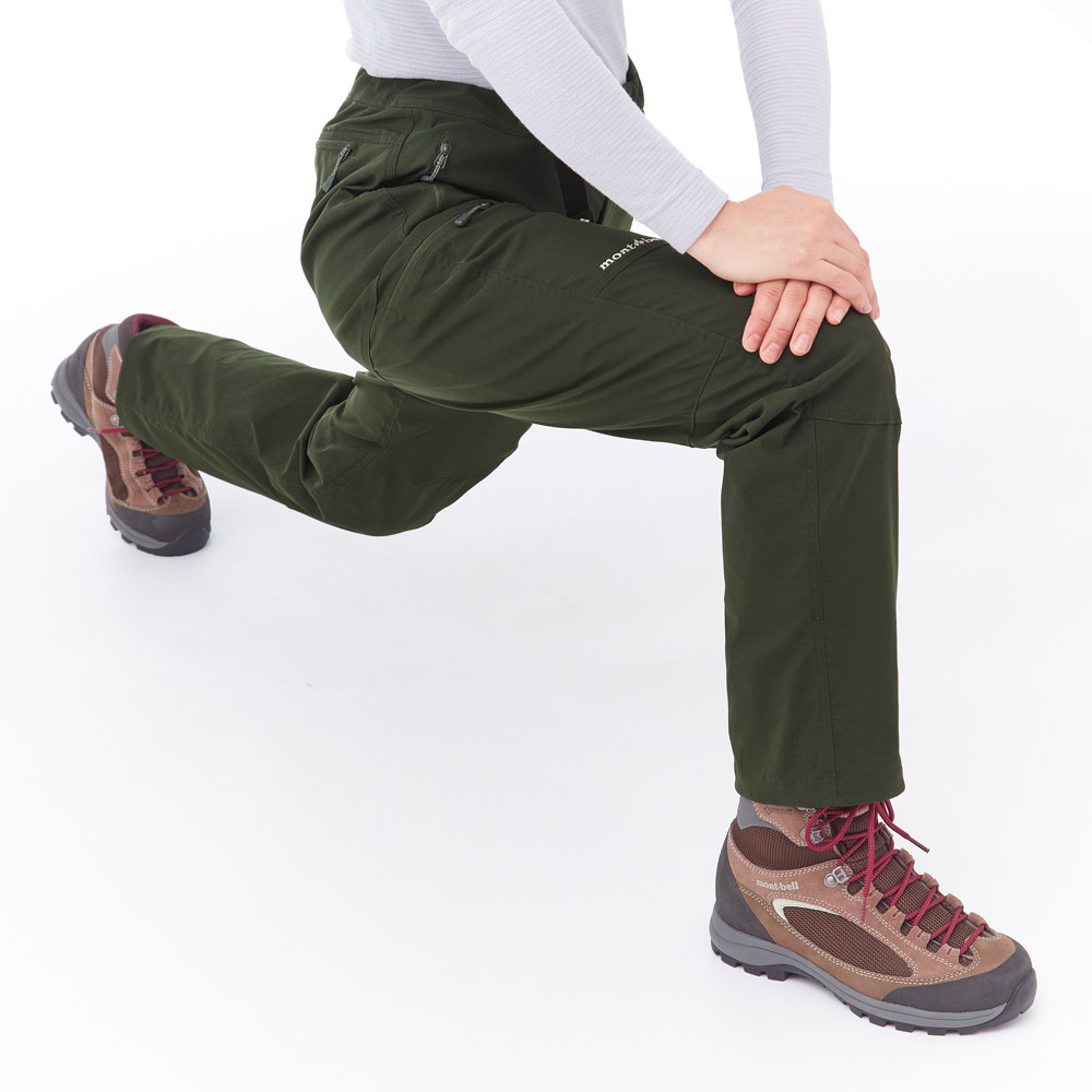 裾まわり:ストレート(裾が登山靴に被る形状で、裾から泥や小石などが入りにくい)