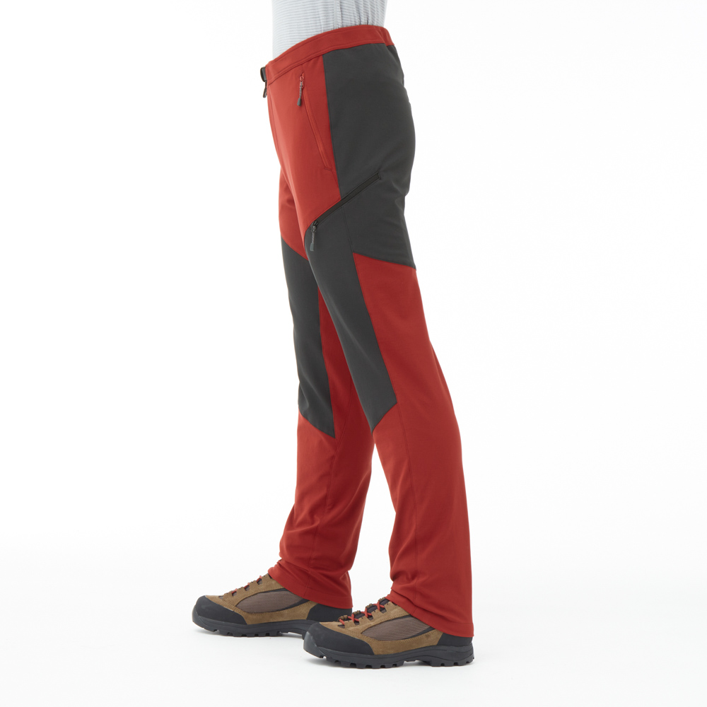 尻と膝部分に縦横2方向へのストレッチ性を備えた生地を使用したパンツです。すっきりとした細めのシルエットで足上げもスムーズです。耐久性と防風性に優れ、秋から冬にかけて活躍します。