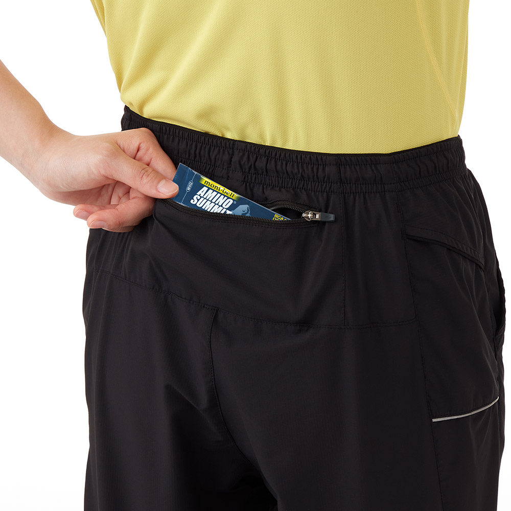 保水しにくく、軽量でハリがある素材を使用したパンツです。ひざの立体裁断や裾のテーパードデザインで足さばきが良く、春から秋のスピードハイクやランニングに適しています。内股部分には、通気性に優れた生地を使用。ランニングに便利なコインポケットや反射テープを備え、両サイドにスマートフォンも入る縦長のポケットがついています。