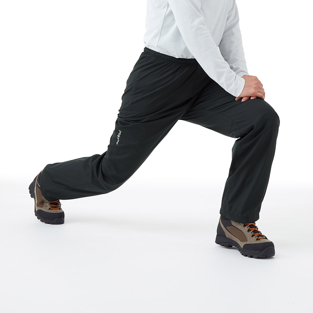 抜群の運動性と軽量性を両立したパンツです。前身頃と尻部分に採用したストレッチ素材とひざ部分に施した立体裁断により、スムーズな足上げを実現しています。サムエシステムを採用し、すそのばたつきを抑えたい時や、丈が長めのパンツをはく時の丈調節が可能です。