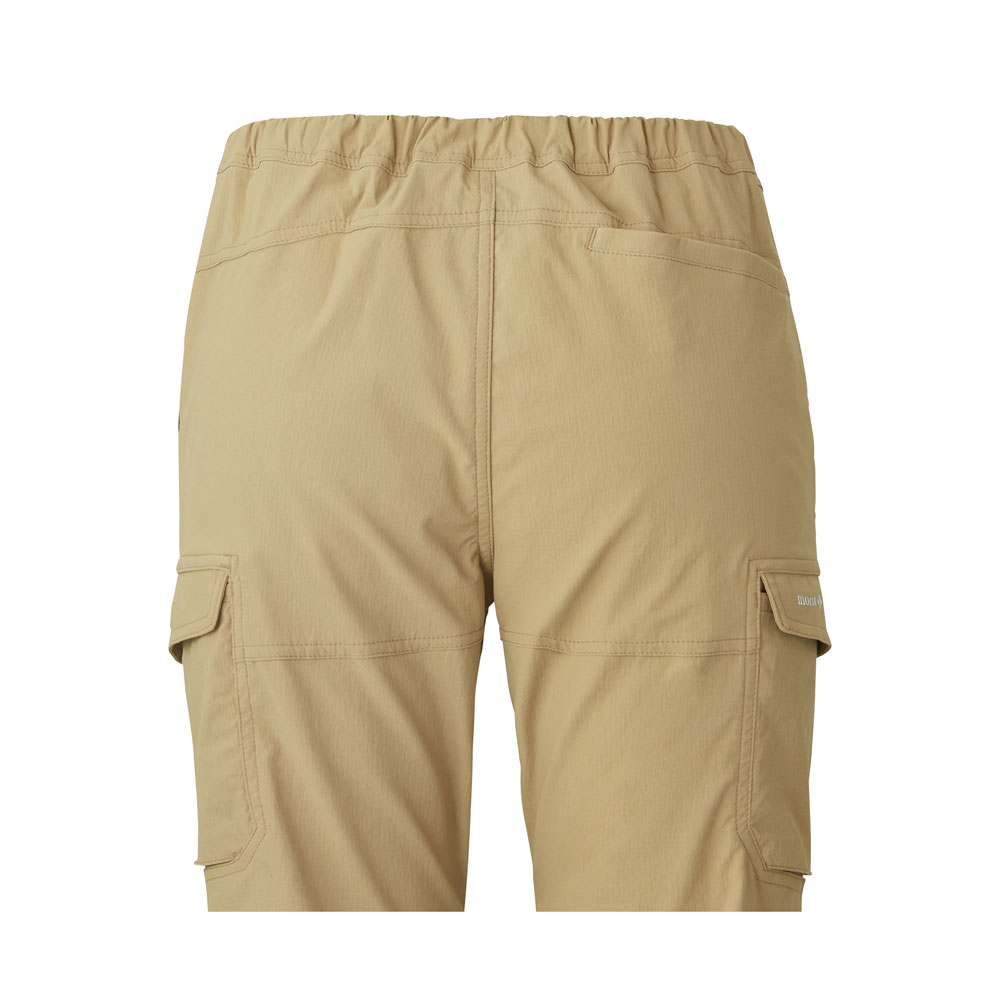ストレッチ性とはっ水性を備えた生地を使用した薄手のパンツです。サイドのカーゴポケットは収納力に優れ、尻部分は生地を二重にして補強しています。適度なハリ・コシを備え、汚れや水をはじくので、登山やキャンプなどさまざまなシーンで活躍。春から秋に着用できます。