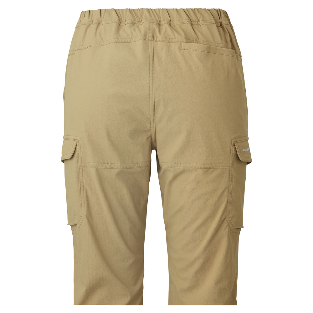 ストレッチ性とはっ水性を備えた生地を使用した薄手の膝下丈パンツです。サイドのカーゴポケットは収納力に優れ、尻部分は生地を二重にして補強しています。適度なハリ・コシを備え、汚れや水をはじくので、登山やキャンプなどさまざまなシーンで活躍。春から秋に着用できます。