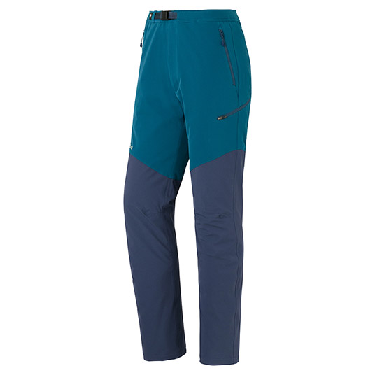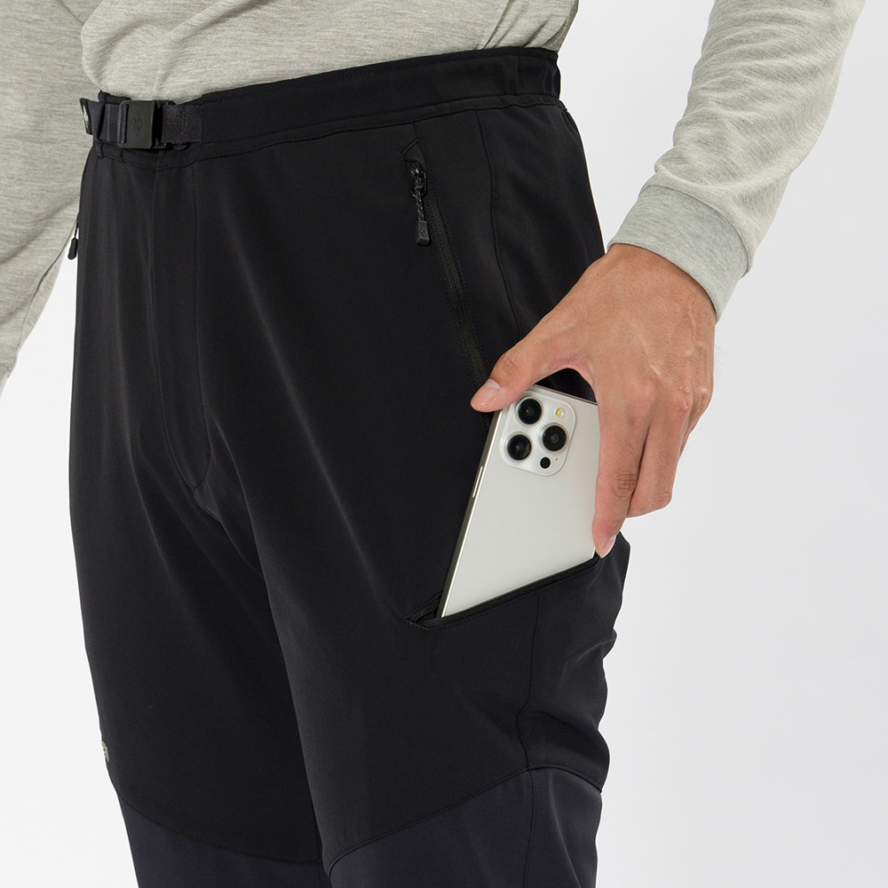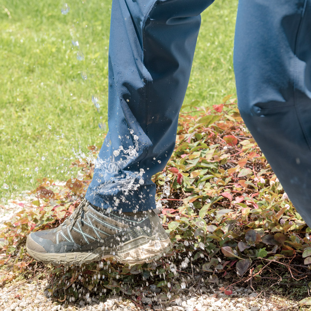 2種類の生地を使用したハイブリッド仕様で、パンツ全体がストレッチ性を備えています。発汗量の多い腰回りから太ももまでは、通気性と縦横2方向へのストレッチ性を持つ生地、膝から下は防水透湿性素材「スーパー ドライテック®」を使用しており、泥汚れなどを流水で洗い落とすことができます。季節を問わずオールシーズン活躍します。