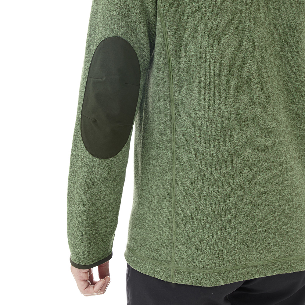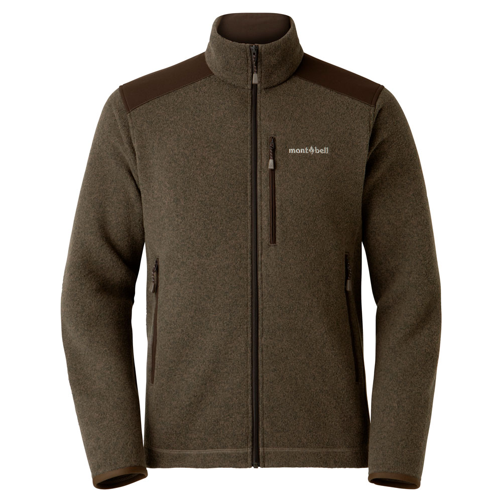 セーター調の上質な風合いを持つフリース素材を使用したジャケットです。軽量ながらも暖かく、裏面は柔らかな起毛地です。アウターや中間着として着用でき、トレッキングから旅行、タウンユースまで幅広い用途・場面で活躍します。擦れやすい肩・ひじには、耐久性を高める当て布付きです。
