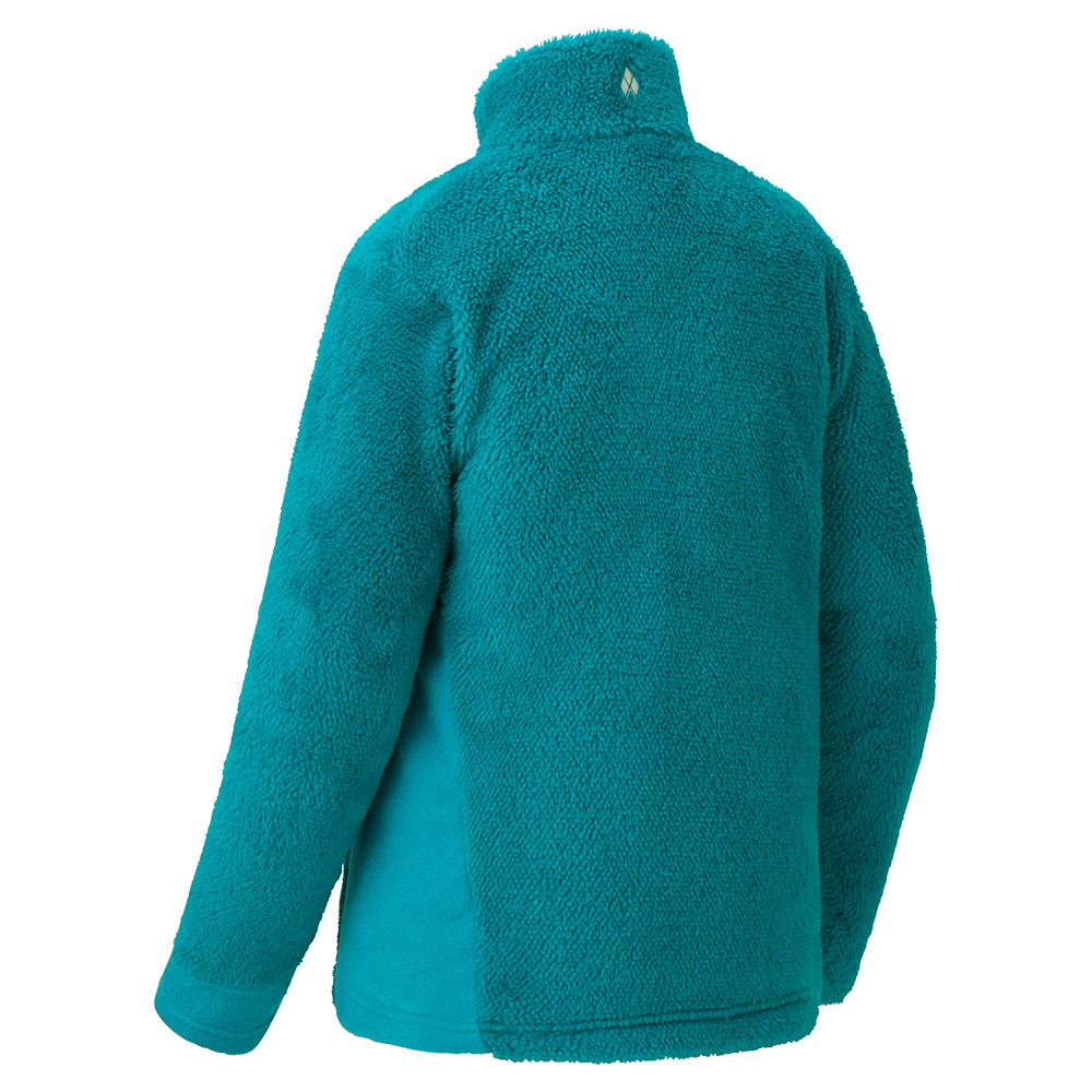 毛足の長いポリエステル繊維を編み込んだフリース素材です。多くの空気を蓄えることができるため、高い保温性を備えています。