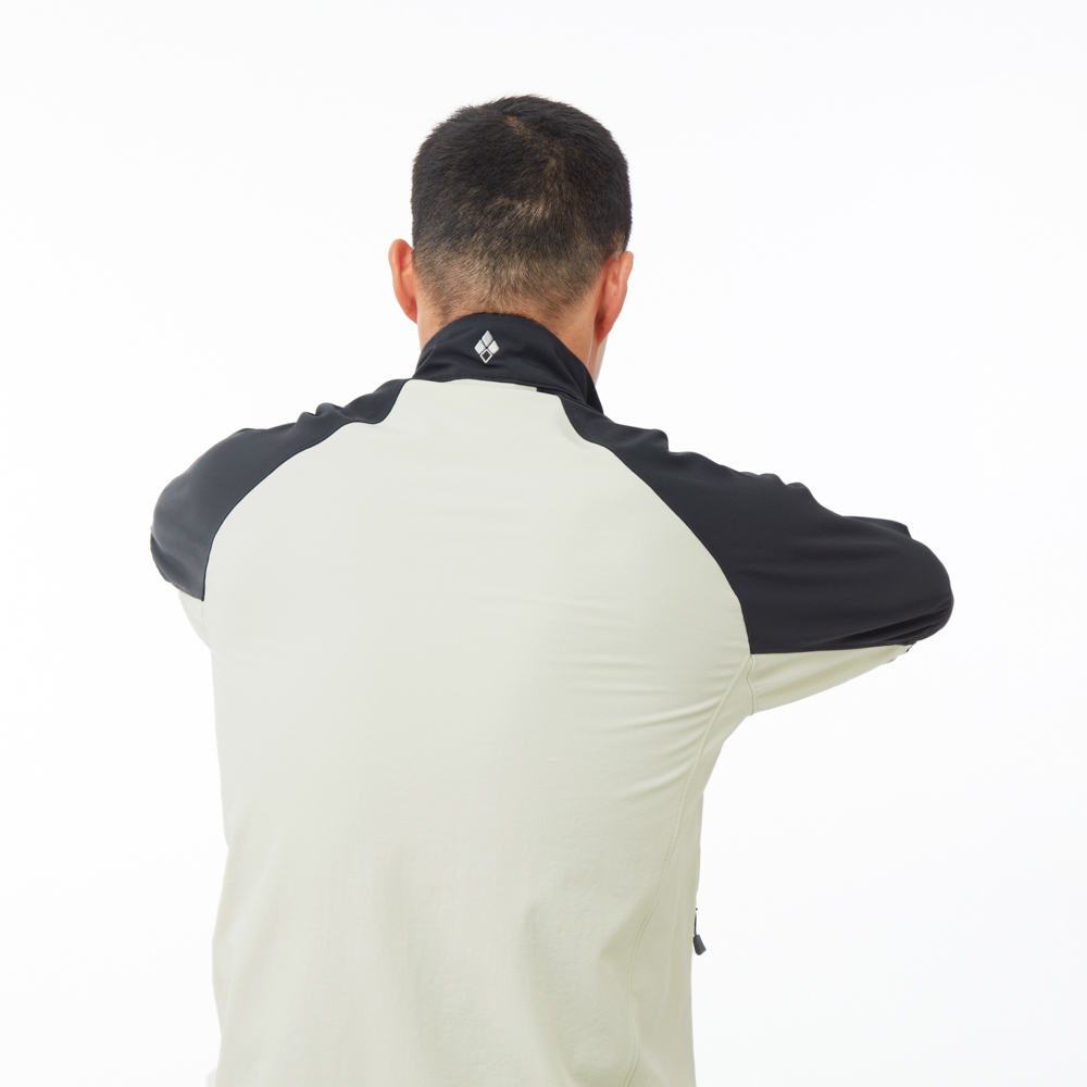 【特長】立体裁断(肘) /アルパインカフ / リードインコード・システム(裾) / ジッパーがあごに当たらない仕様 / 2WAYストレッチ