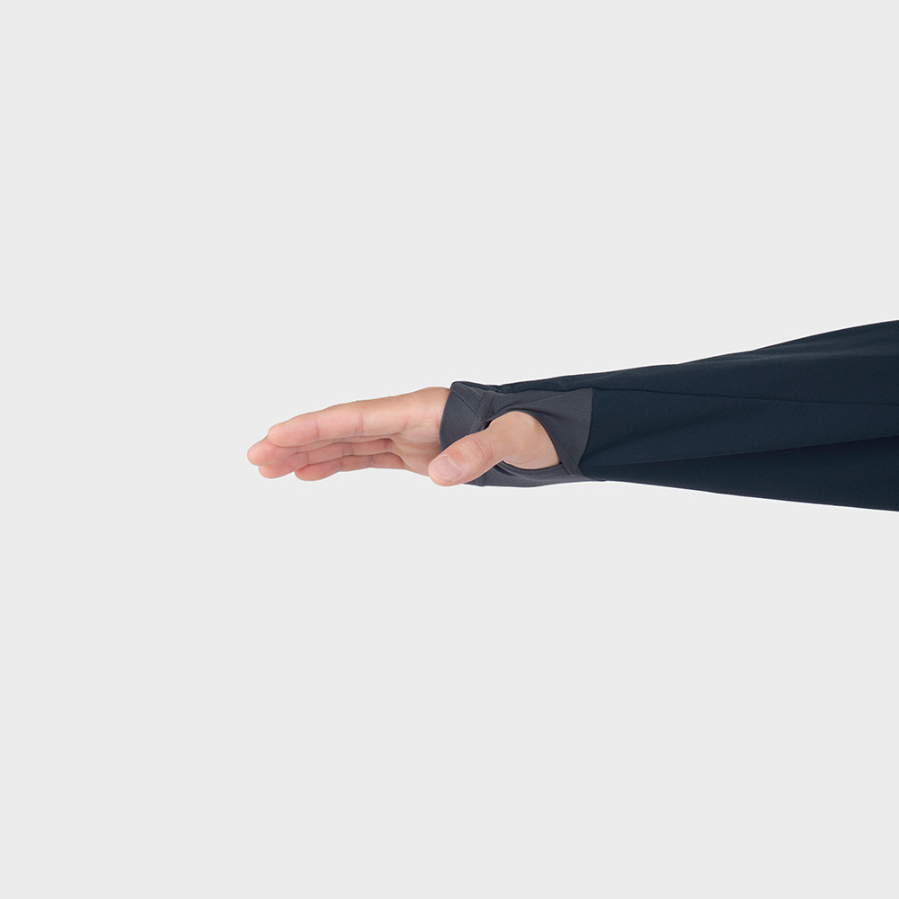 【特長】立体裁断(肘) / ストレッチカフ / ジッパーがあごに当たらない仕様 / サムホール