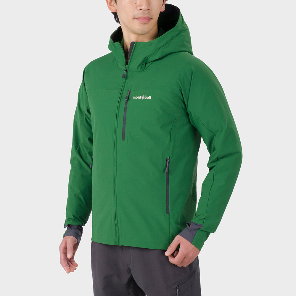 高い防風性とはっ水性を備え、ストレッチ性に優れたパーカです。伸縮性素材が体の動きにしなやかに追従します。薄手ながら適度な保温性があり、衣服内に熱気がこもりにくく、運動量が多いアクティビティでも快適な着心地です。
