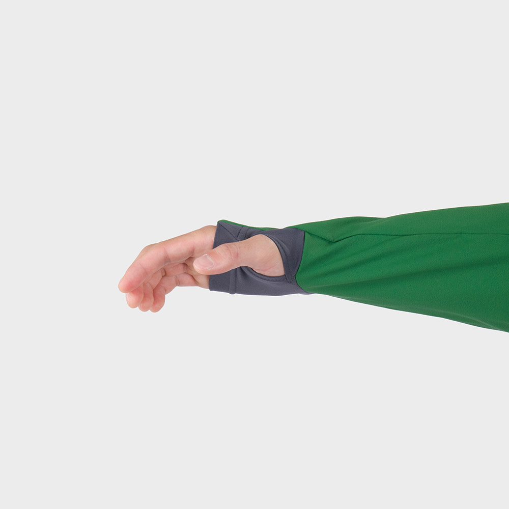 【特長】デュアルアクスルフード / 立体裁断(肘) / ストレッチカフ / ジッパーがあごに当たらない仕様 / サムホール