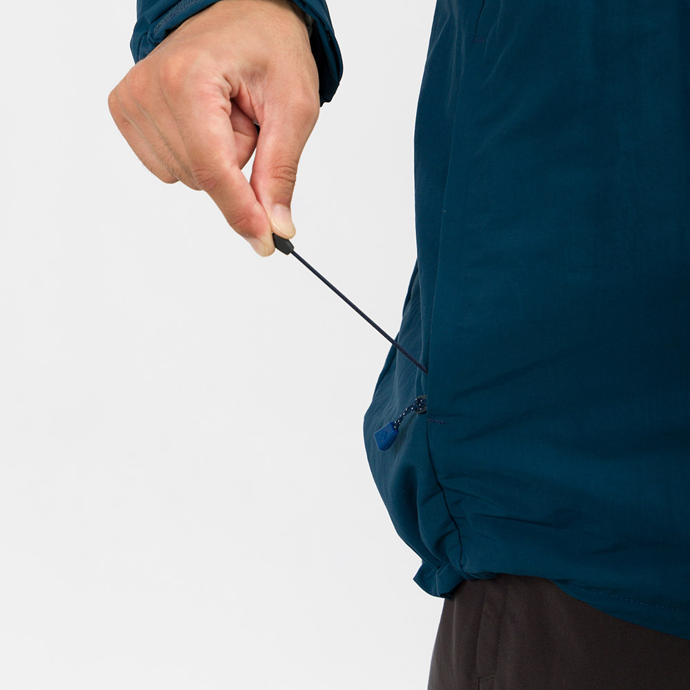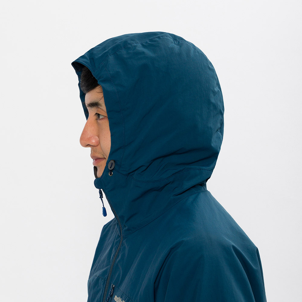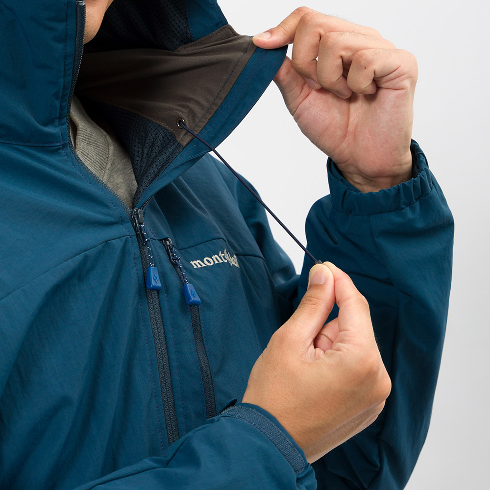 【特長】リードインコード・システム(裾) / ジッパーがあごに当たらない仕様 / アルパインカフ / 立体裁断(肘) / フードの顔まわりのフィット感の調節が可能