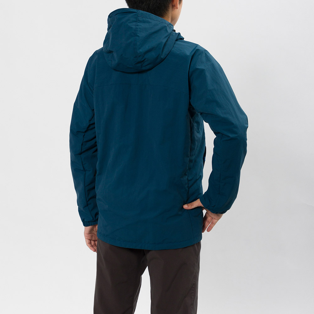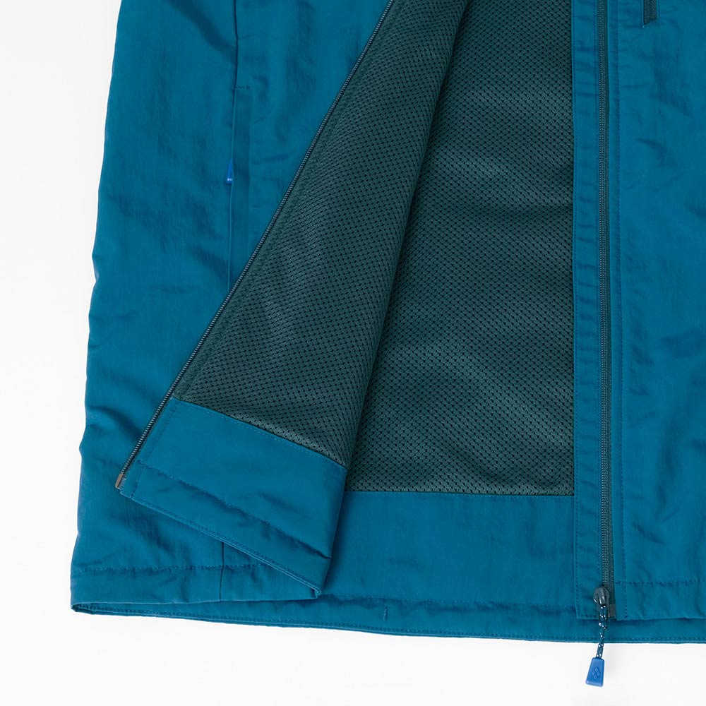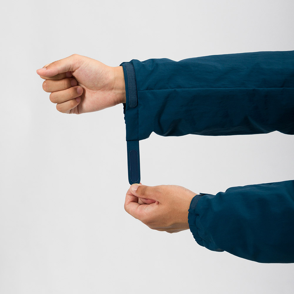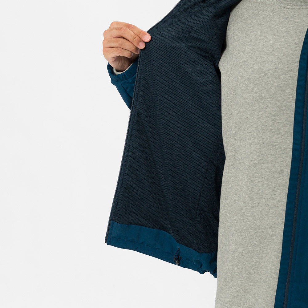 【特長】リードインコード・システム(裾) / ジッパーがあごに当たらない仕様 / アルパインカフ / 立体裁断(肘) / フードの顔まわりのフィット感の調節が可能
