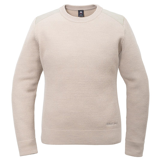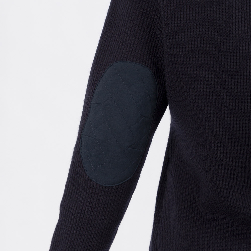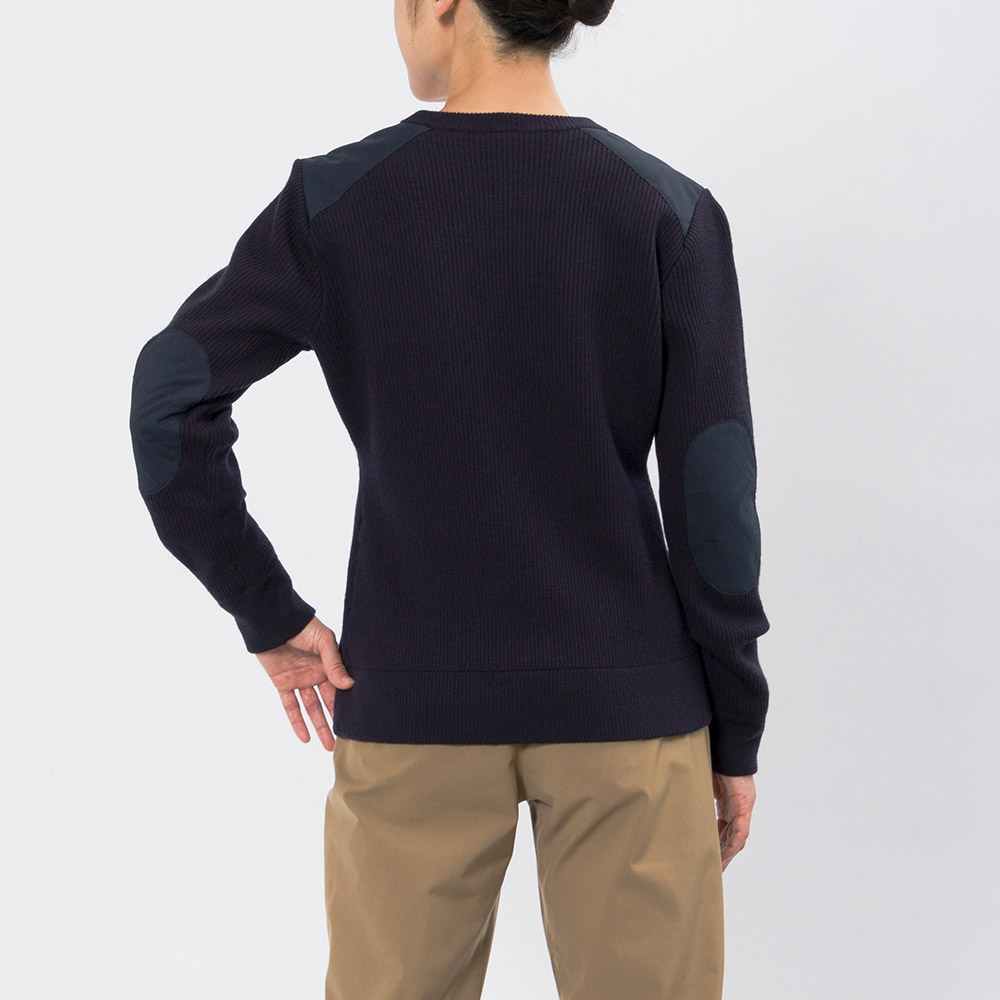 しなやかな着心地のウールプラスを使用した厚手のセーターです。高い保温性とストレッチ性を備えています。さまざまな場面で着用しやすい、シンプルなデザインです。摩耗しやすい肩と肘には補強を施して耐久性を高めています。