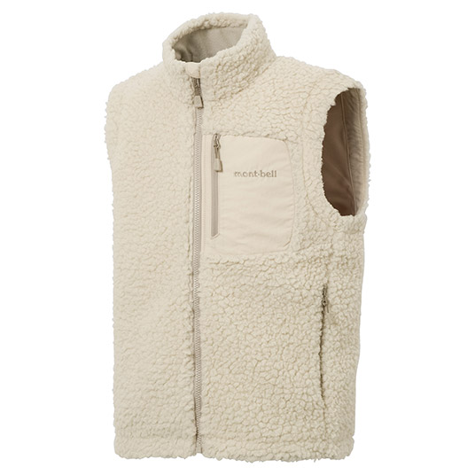 羊毛のようなモコモコとした風合いの厚手のフリースベスト。非常に高い保温性を備え、ゆとりのあるシルエットで、アウターとしても中間着としても着用できます。柔らかく肌触りの良い裏地は滑りが良く、脱ぎ着がしやすくなっています。