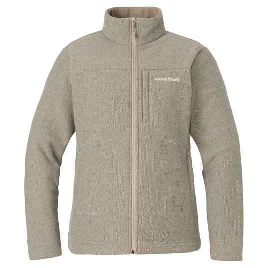 ツイード調の上質な風合いを持つフリース素材を使用したジャケットです。軽量ながらも暖かく、裏面は柔らかな起毛地です。アウターとして厚手のインナーの上にも羽織れるよう、少しゆったりとしたシルエットです。アウターと中間着、どちらでも使用でき、トレッキングから旅行、タウンユースまで幅広く使えます。