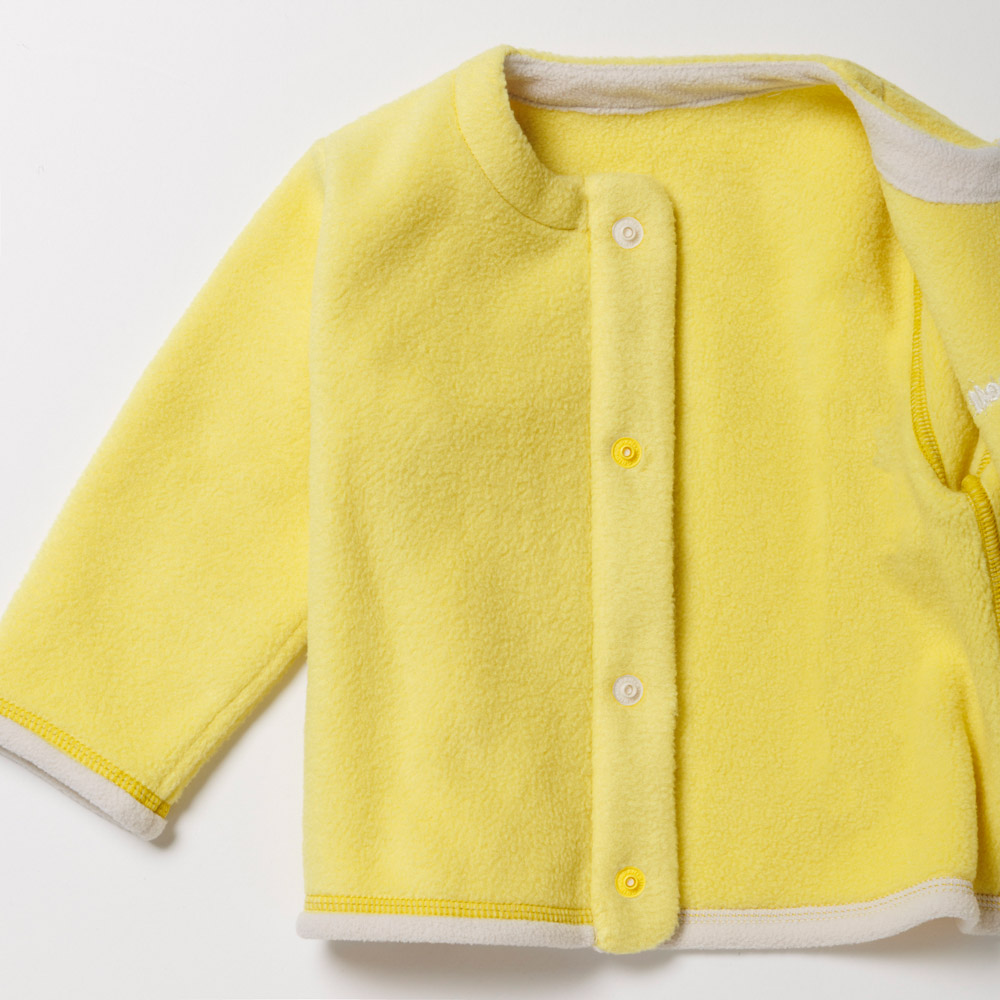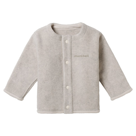 高い保温性を備えた中厚手のフリース素材を使用した、軽く暖かなジャケットです。フロント部はスナップボタンで脱ぎ着させやすい仕様です。重ね着しても干渉しにくいシンプルなデザインで、中間着やアウターとして幅広く活用できます。