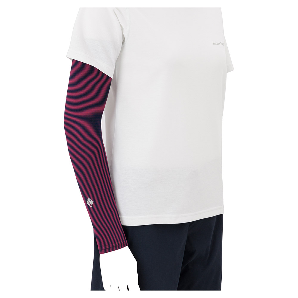 UVカット効果を備え、手軽に紫外線対策を行える薄手のアームカバーです。ストレッチ性と制菌効果を持つ吸水拡散性素材を使用し、春から秋の登山に適しています。袖口にはサムホールが付いているので、手の甲まで覆うことができます。