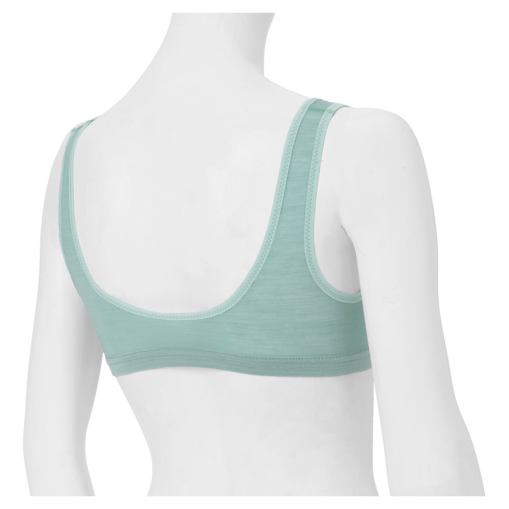 薄手ながらも保温性に優れ、滑らかな肌触りで心地よくフィットするブラです。肩紐がずれにくいパターンで仕上げ、ソフトで通気性の高いパッドを備えています。消臭効果に優れた上質なウールを使用しています。