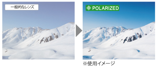 PL(ポラライズド)レンズは、晴天時に雪面から乱反射した光を効果的にカットすることで、にじみやギラつきの少ないクリアな視界を確保します。まぶしい晴天時にも雪面の細かい凹凸をしっかり捉えます。