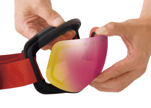 多数の日本人の頭部形状データを基に設計されたフレーム構造です。欧米人向けに設計されたゴーグルに比べ、顔との間にすき間ができにくく、呼気や冷気の侵入によるレンズの曇りを低減します。